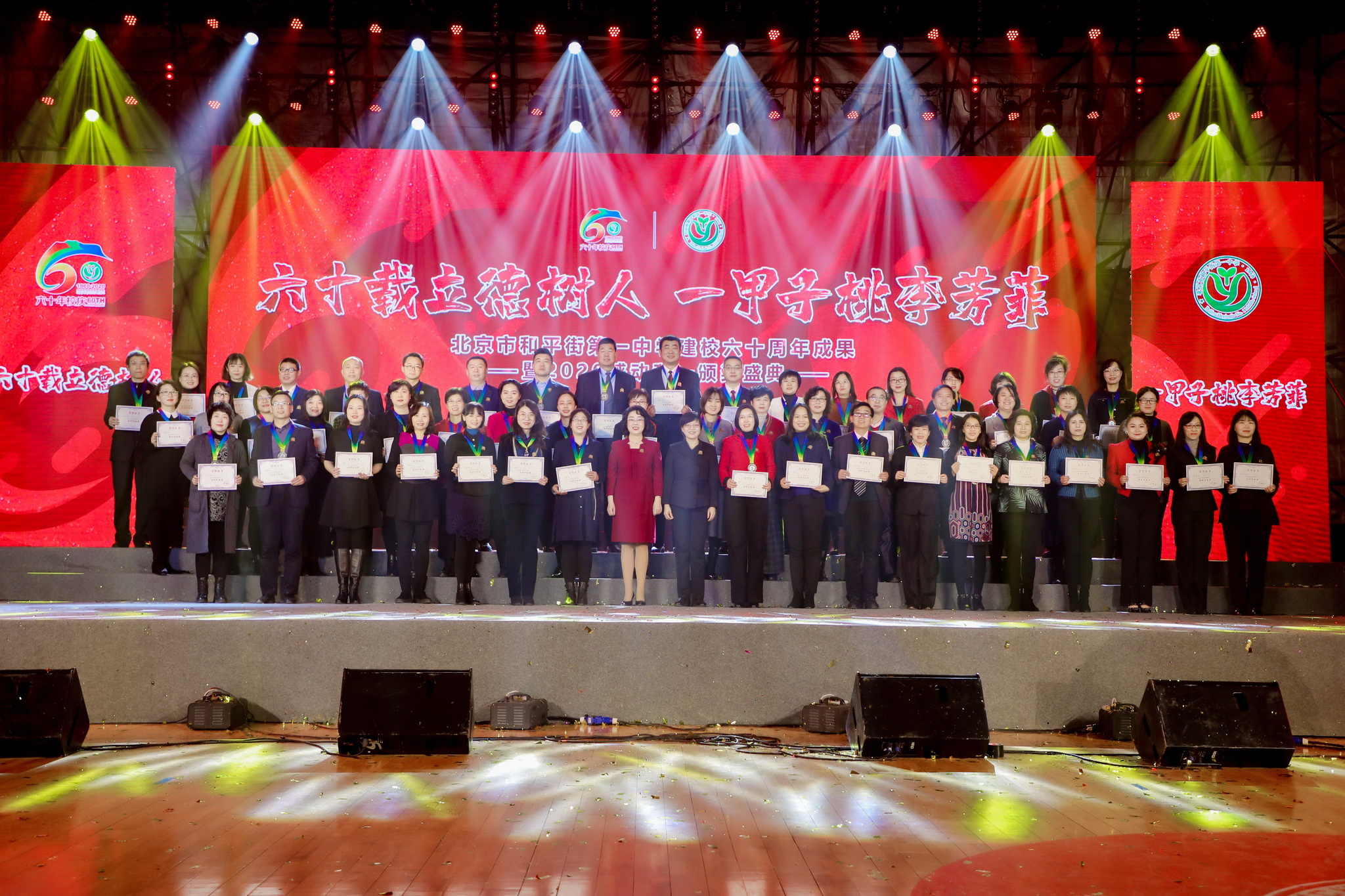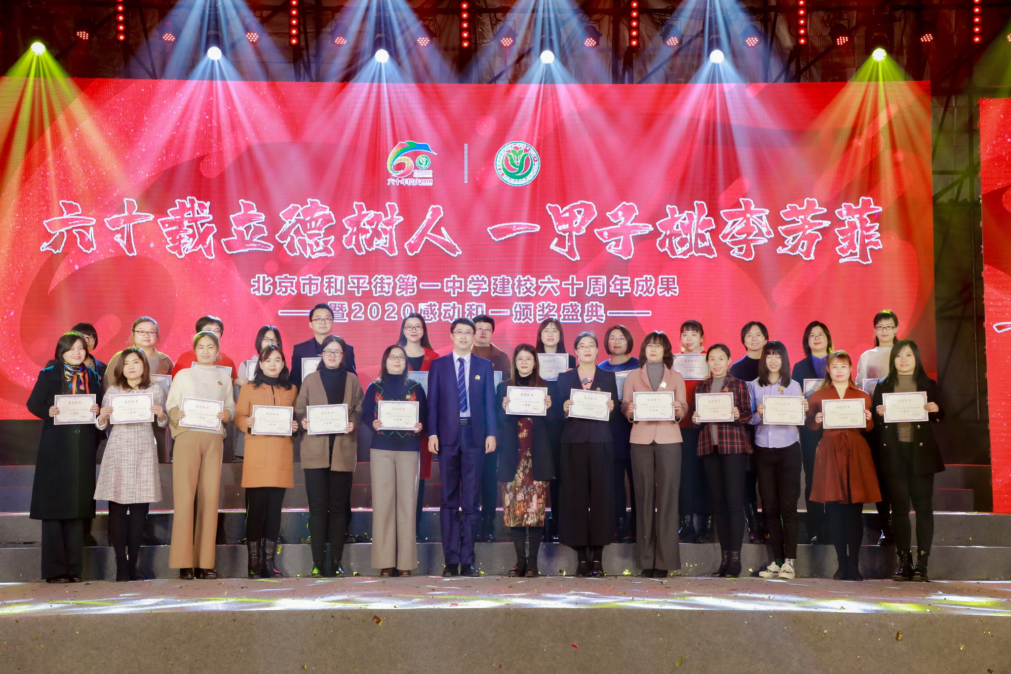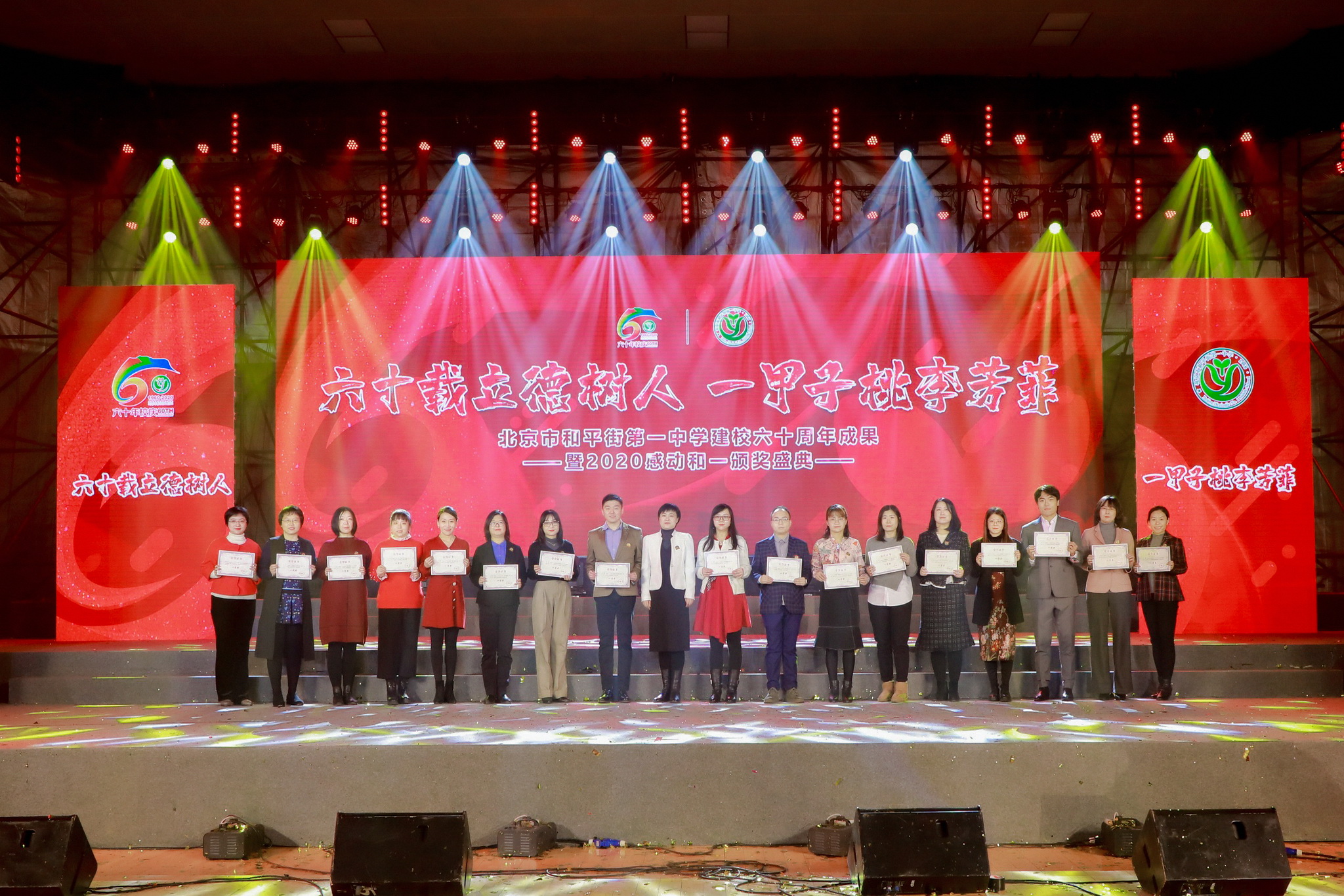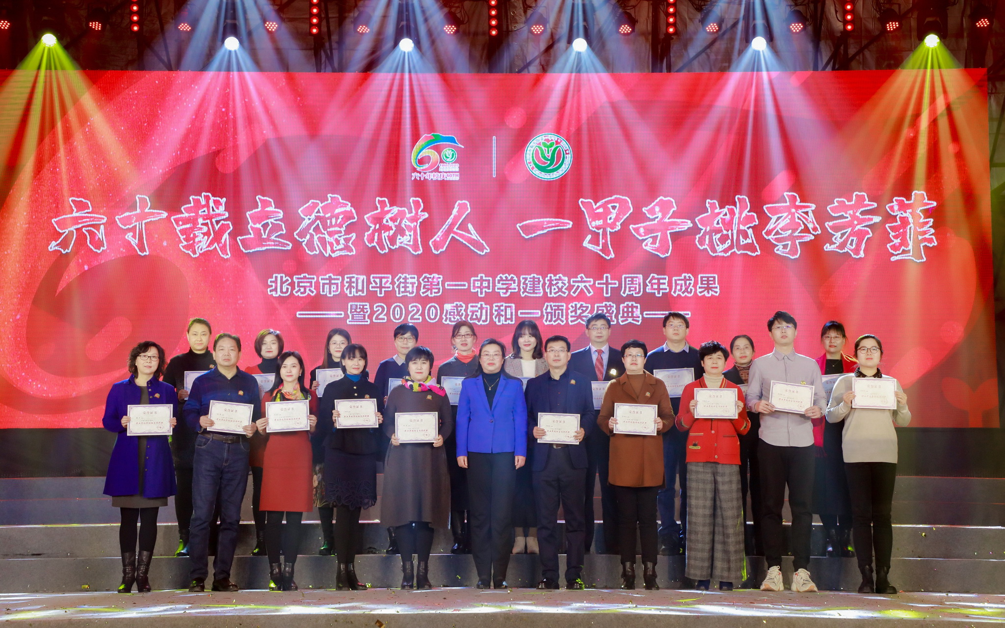 六十载立德树人,一甲子桃李芳菲。2020年12月31日,辞旧迎新之际,和平街一中隆重举行建校60周年成果展暨2020感动和一颁奖盛典。六校区全体教职员工欢聚在校区指定会场,观看建校60周年成果展演暨颁奖盛典视频,共同庆祝学校60华诞,祝福学校生日快乐。