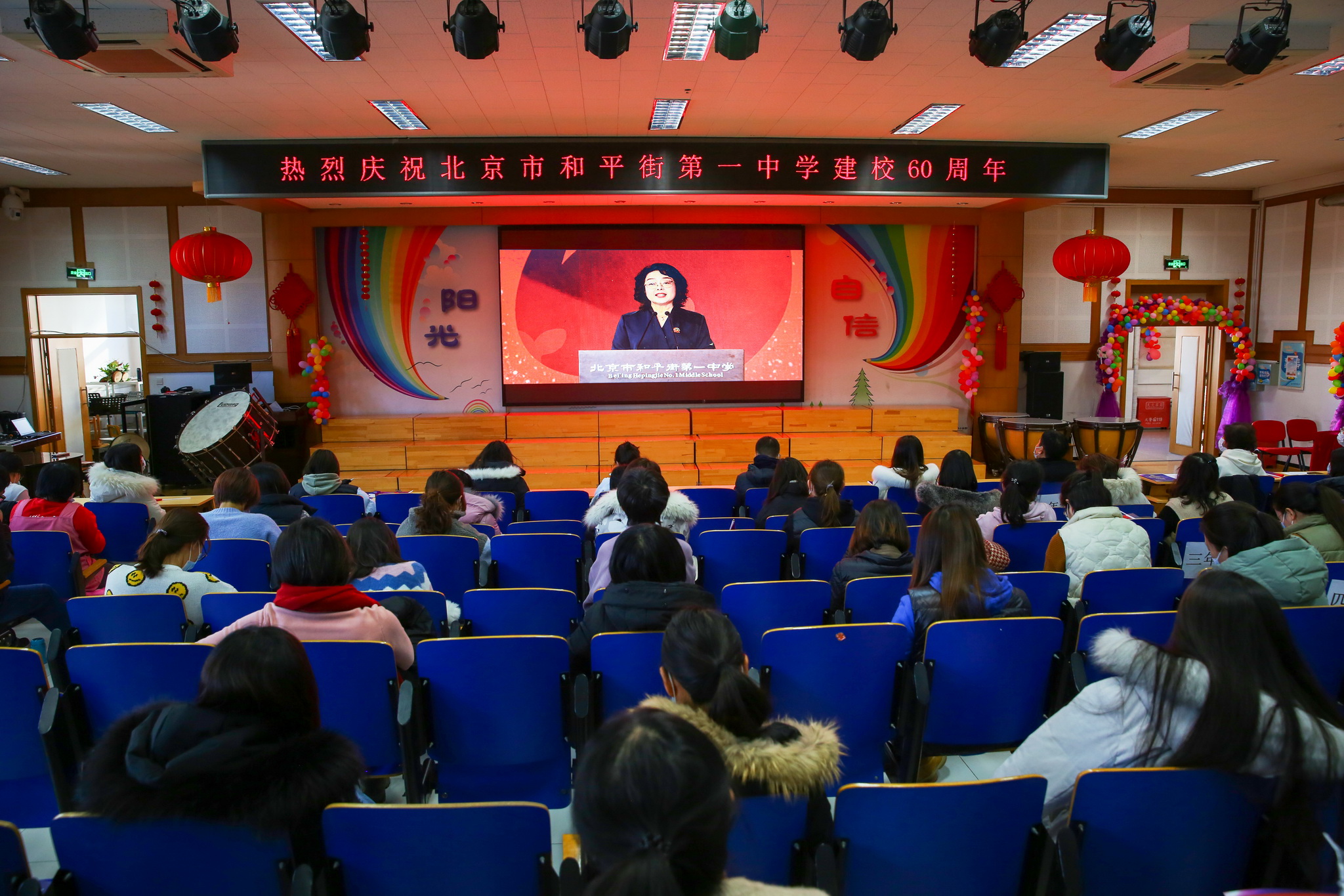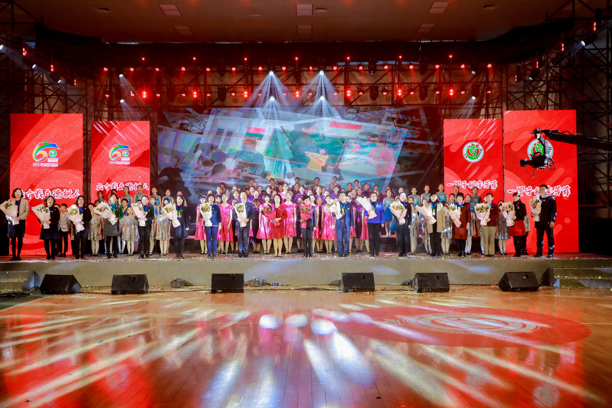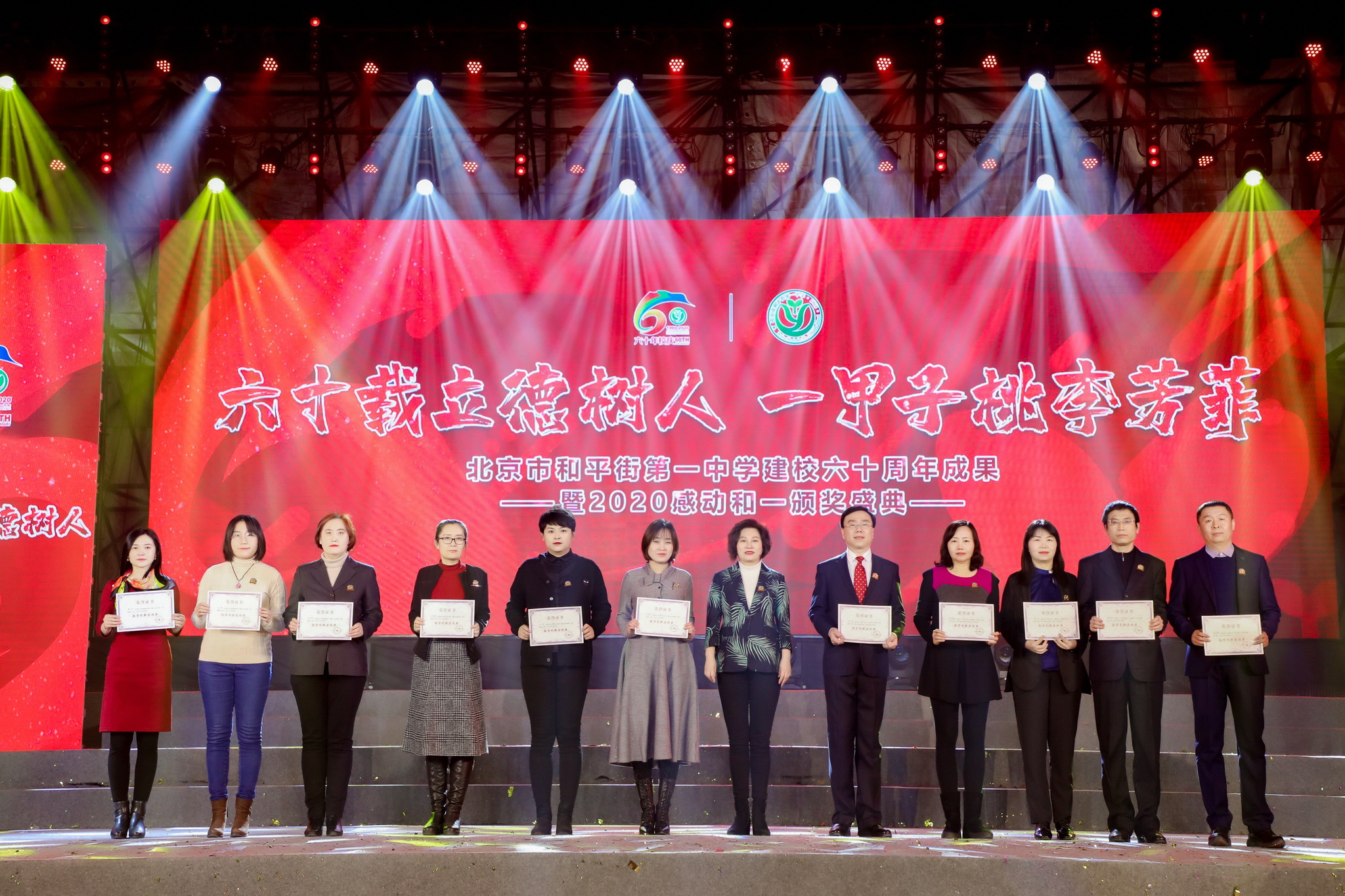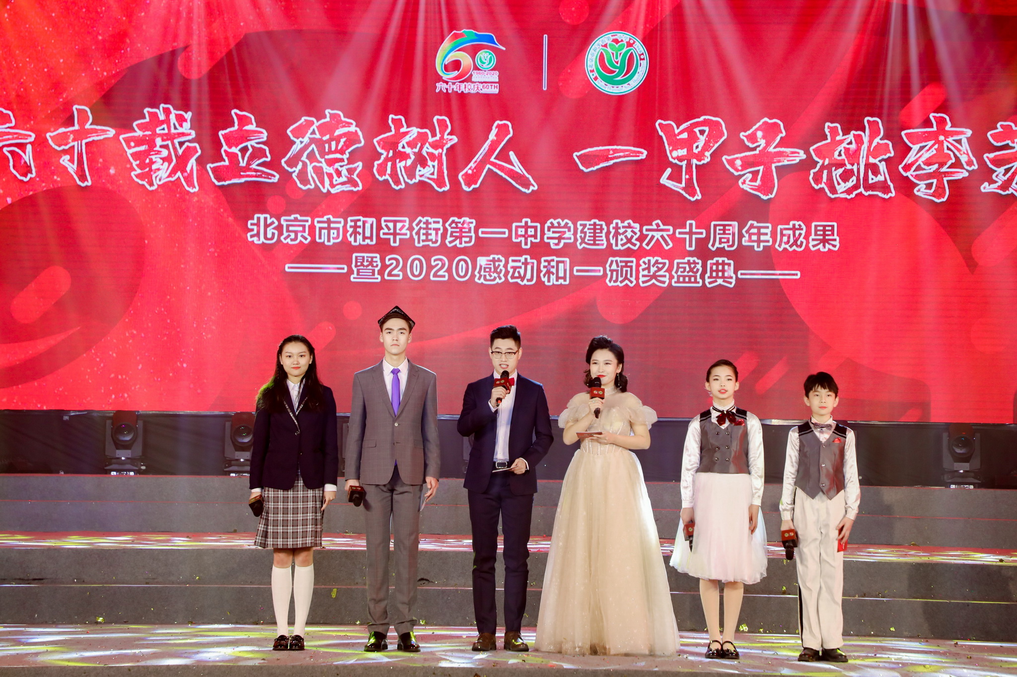 六十载立德树人,一甲子桃李芳菲。2020年12月31日,辞旧迎新之际,和平街一中隆重举行建校60周年成果展暨2020感动和一颁奖盛典。六校区全体教职员工欢聚在校区指定会场,观看建校60周年成果展演暨颁奖盛典视频,共同庆祝学校60华诞,祝福学校生日快乐。