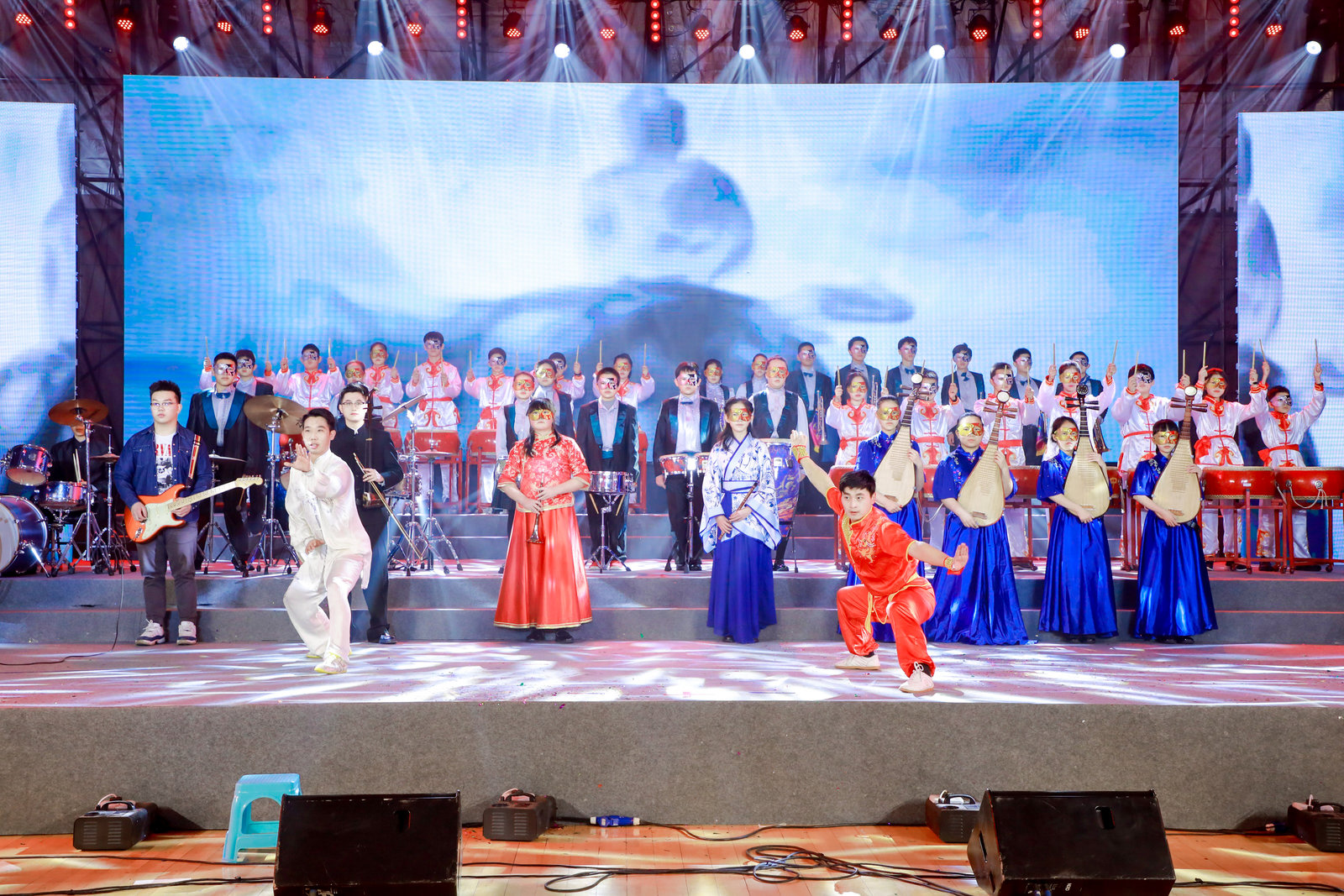 建校60周年成果汇报表演在朝来校区、清友园校区、莲葩园校区舞蹈社团学生的曼妙舞姿中拉开帷幕。傣族舞、草帽舞、健美操舞舞动全场。一首动听的《今天是你的生日》带动全场气氛,全体教职工和着歌声一起为学校送上60周岁生日祝福。随后,学校各社团师生纷纷用优美动听的歌声、声情并茂的诗朗诵、轻盈曼妙的民族舞、动感活泼的韵律操、感人至深的舞台剧等表演集中展现了学校的60年办学成果,表达了对学校60华诞的祝福,回顾了2020师生不平凡的抗疫历程,展望了和一新纪元发展蓝图。整台表演融合诗朗诵、民族舞蹈、现代舞蹈、武术、跆拳道、器乐、声乐、舞台剧等多种表演形式,将和一师生阳光、自信的风采展现的淋漓尽致。本次展演不仅是对学校60周年校庆的祝福,也是对学校艺术教育阶段性成果的展现,促进了学校美育的发展。
