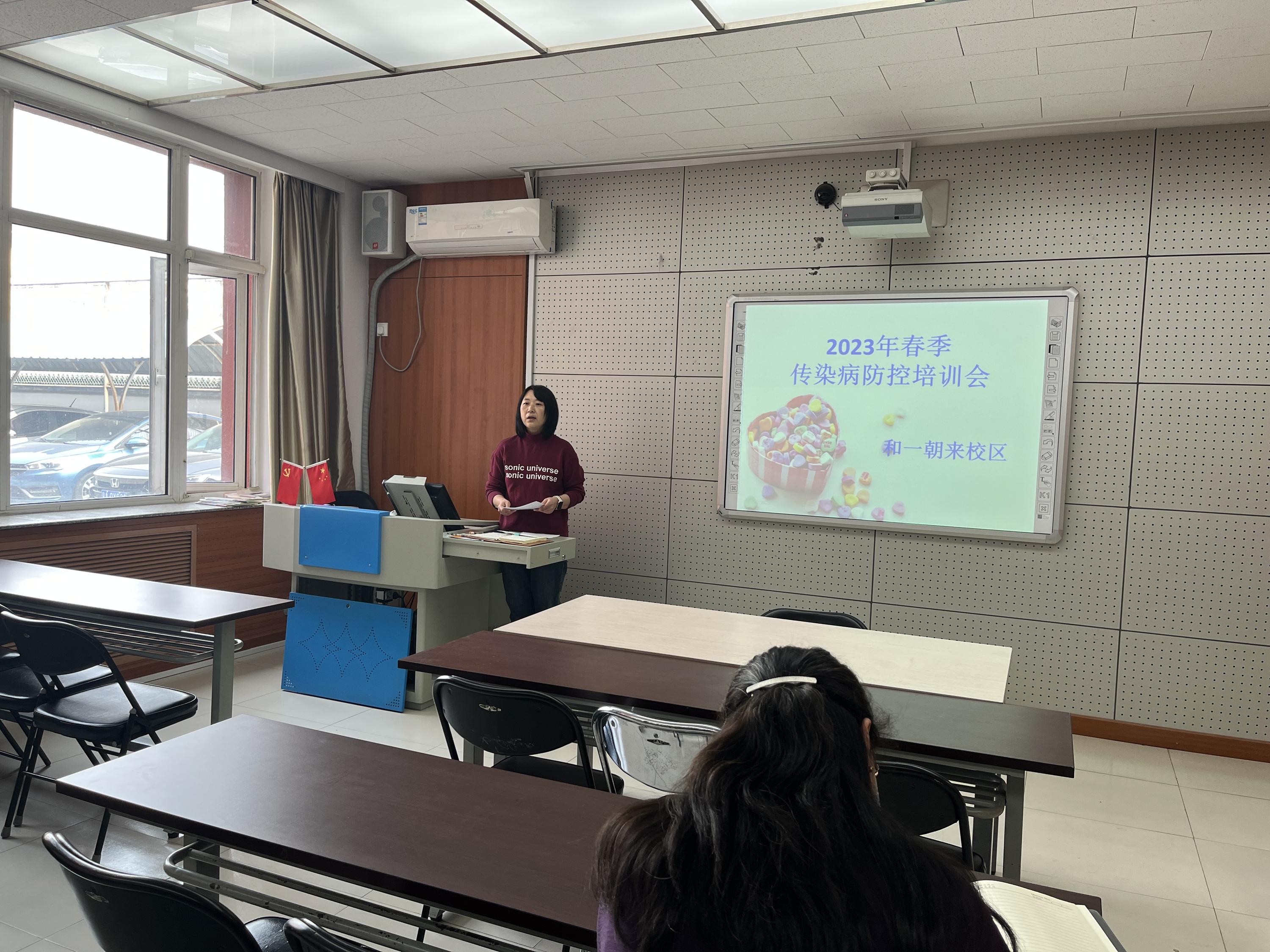 春季是各种传染病的高发期,为了进一步做好春季传染病的防控工作,和平街一中朝来校区于2023年3月7日下午班主任例会时间召开了春季传染病防控工作班主任培训会,会议由学生发展处韩晓佳主任主持,校区主管校长张景鲜、校医朱春燕和全体年级组长及班主任参加了培训会。