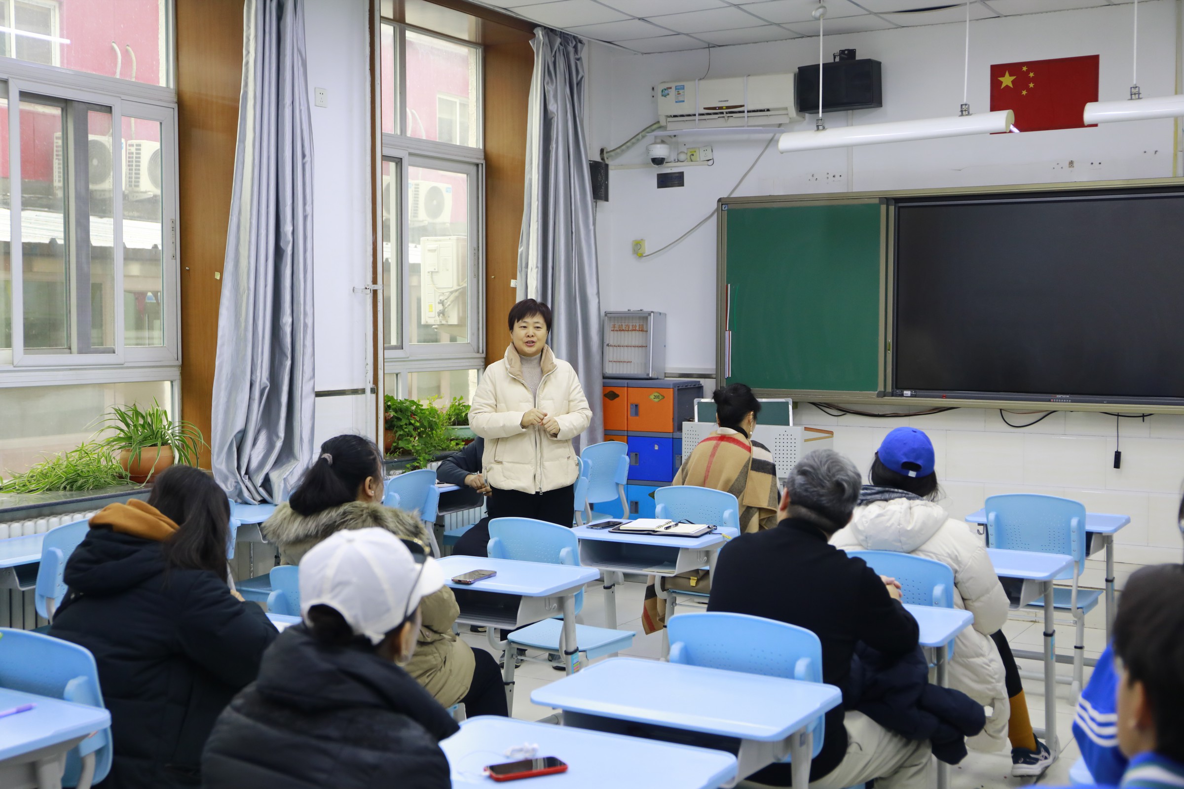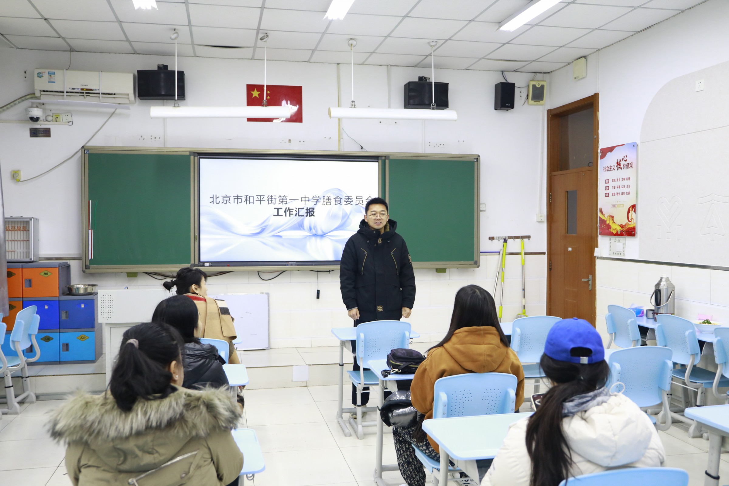 随后,家长代表与教师代表共同参与陪餐,品尝当日学生餐并填写评价表。在座谈会上,德育主任郝刚汇报了学校膳食委员会工作情况,总务主任白林汇报了学校膳食管理制度、食谱制定、食品安全管理及营养搭配等工作情况。代表们围绕食材新鲜度、菜品口味、特殊饮食需求等问题积极提问,学校领导与食堂负责人逐一回应,并认真记录意见建议。最后,校区主管副校长周建萍讲话,表示学校将不断优化学生餐饮服务,为学生提供更加健康、营养的餐食。