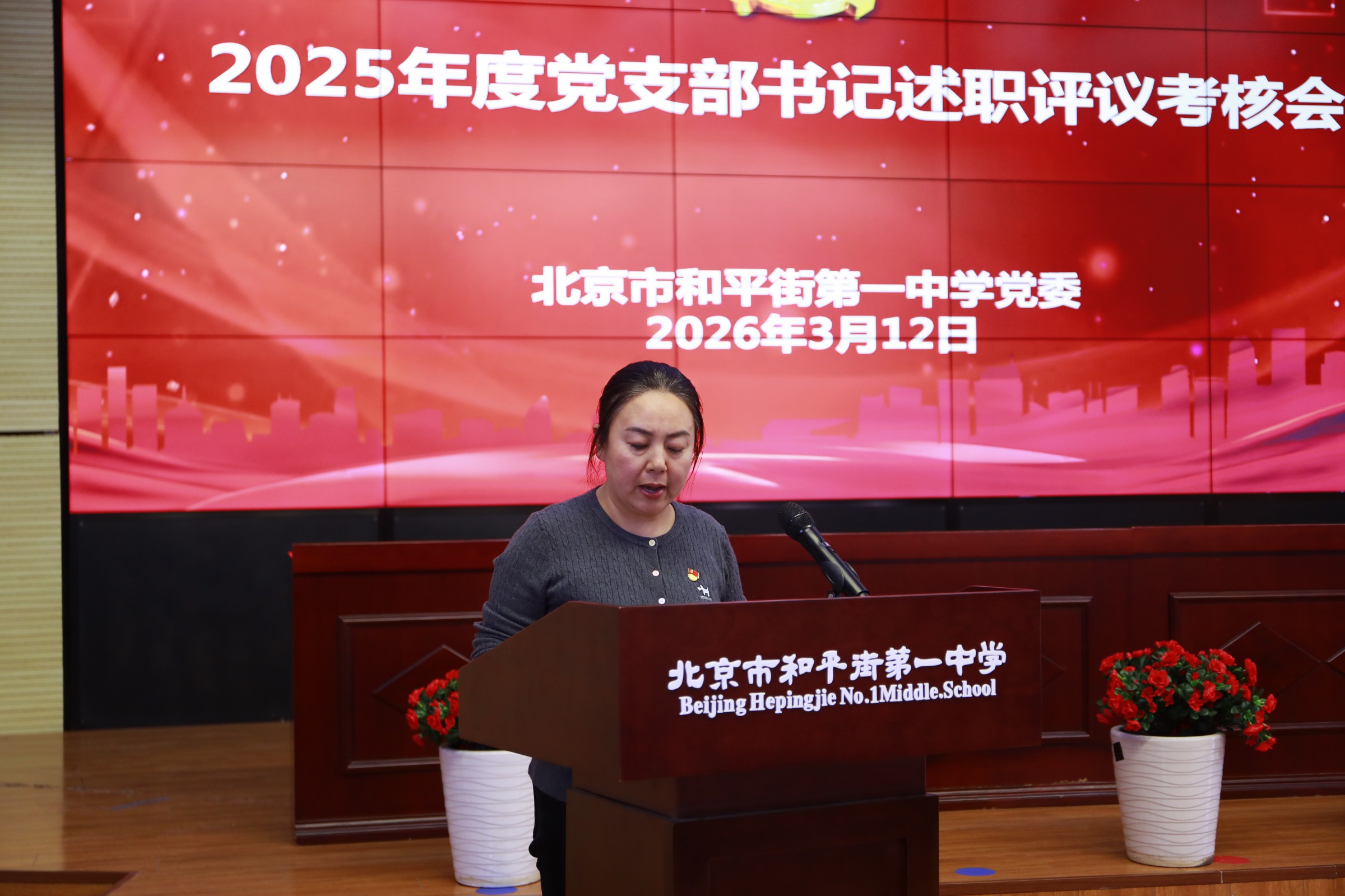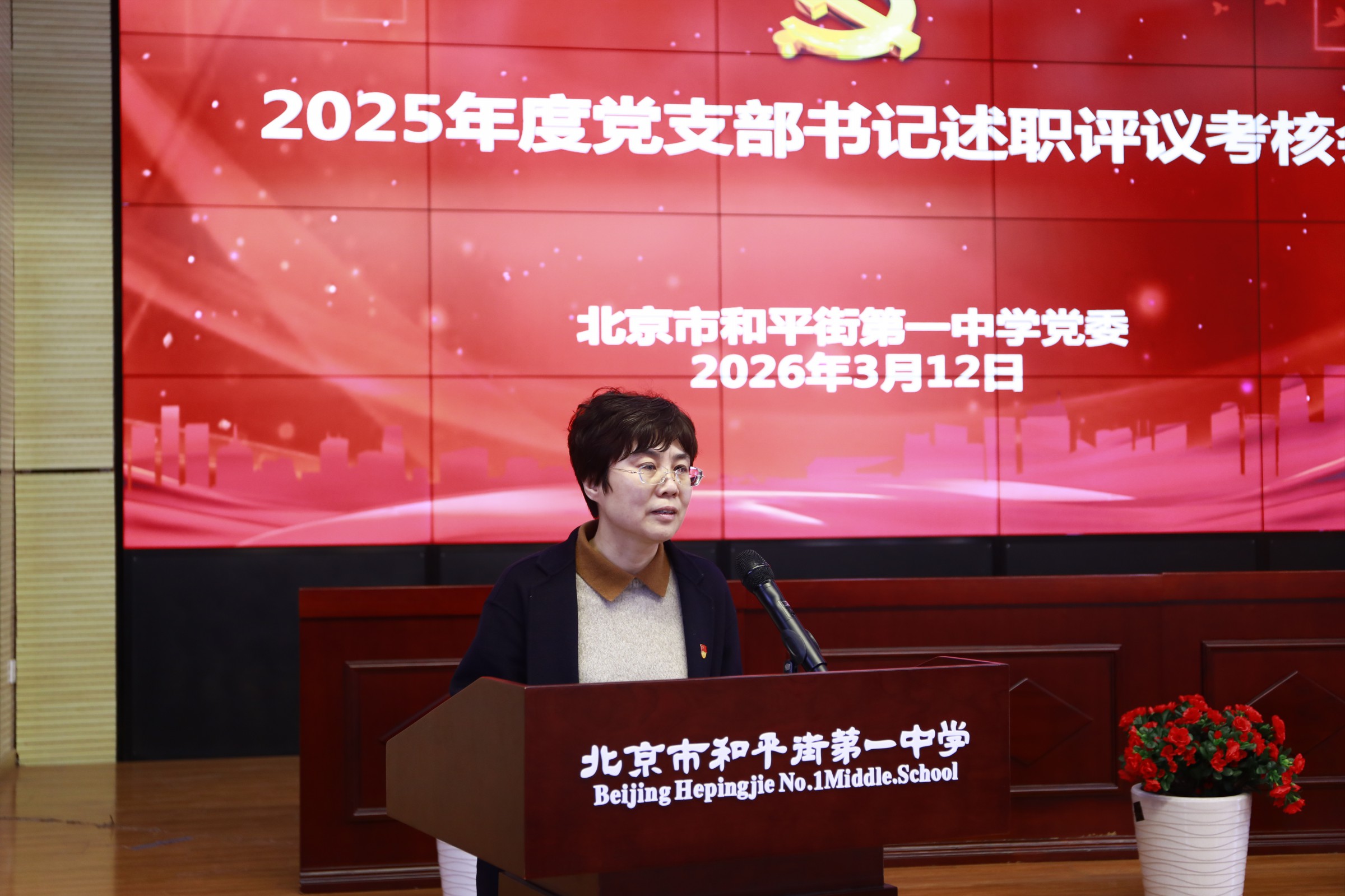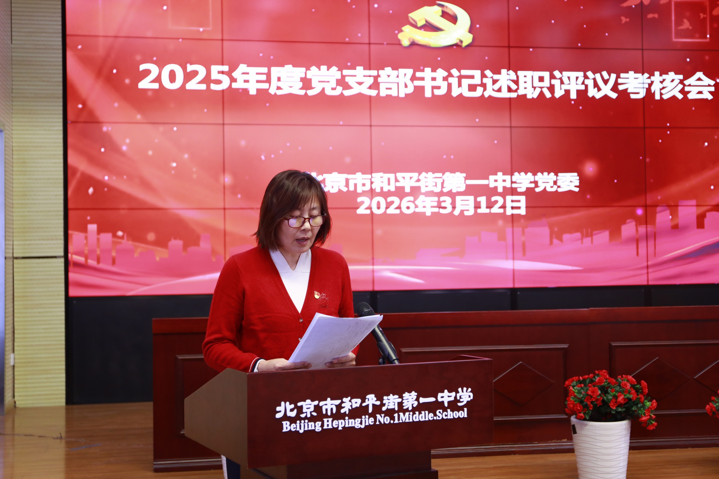 为进一步压实党支部书记抓党建“第一责任人”职责,全面提升学校基层党建工作质量和水平,2026年3月12日下午,北京市和平街第一中学党委在和平街高中校区报告厅召开2025年度党支部书记抓党建述职评议考核现场会。会议由党委书记王松同志主持,党委委员、党总支书记、各校区党支部书记及党员代表参会。