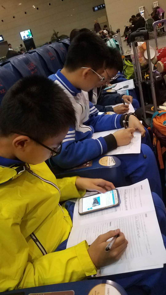 几天的研学之旅,朝来学子们也展示了良好的校风校貌。乘坐高铁时,同学们或读书或写作业,或是在老师的指导下研究自己的课题,整个车厢中都是浓浓的学习氛围。每到一个景点,大家井然有序地下车,队列整齐一致地行进,形成一道靓丽的风景线。参观博物馆时,大家安静聆听导游的讲解,慢步追随,轻声交流。整个过程,同学们融入集体,服从安排,听从指挥,无不体现朝来学子良好的素养。