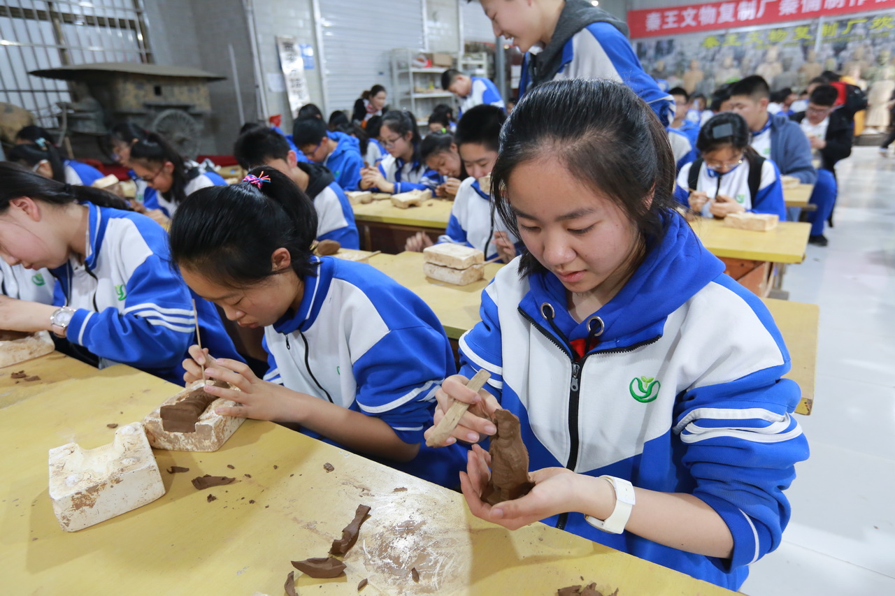 除了参观,同学们还动手实践扯面条、拌凉皮,制作兵马俑,学习安塞腰鼓等,把课堂和生活进行融汇贯通。在实践中学,在学中实践。