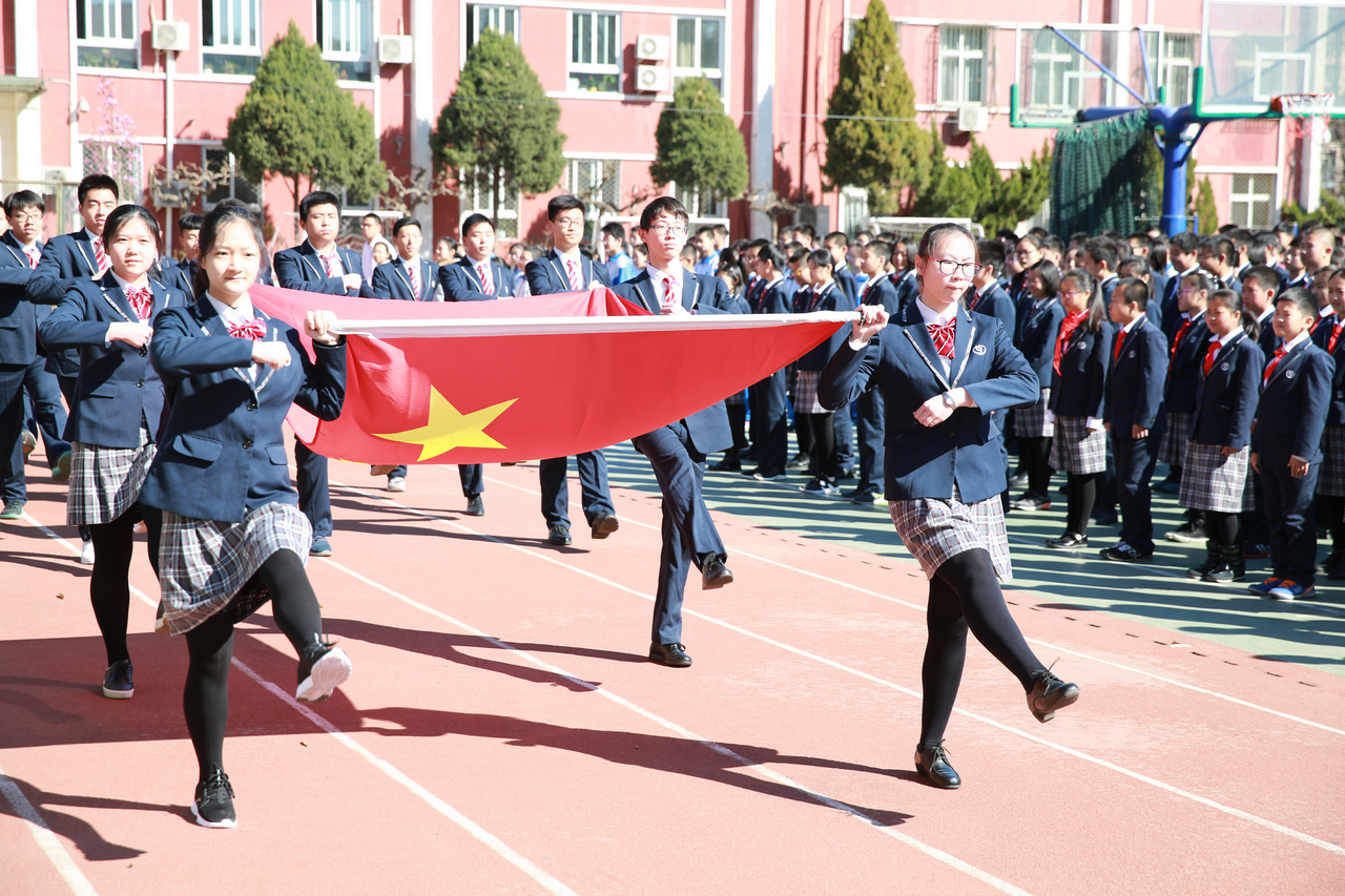 学校每周一的升旗仪式是学生德育教育的重要载体,也是最接近学生的仪式教育。学校在充分挖掘升旗仪式传统的教育优势基础上进行改革创新。学校升旗仪式改革从国旗下讲话主题,学生的着装,高唱国歌、校歌三个方面进行,使升旗仪式变得简单而隆重,将爱国镌刻在每一位师生的心中。