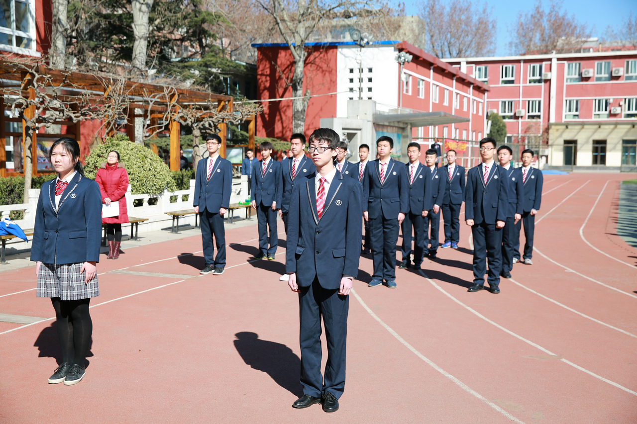 学校还对学生进行了制服教育和礼仪教育,要求学生周一升旗仪式必须身着制服。作为仪式教育的一个重要方面,“其身正,不令而行”,只有严肃、端正,才能真正让学生在仪式中产生敬畏之情,激发他们对国旗、国歌乃至国家的热爱。从出旗到升旗,从升旗手的装扮到全校师生的衣着,从学生的站姿到眼神都体现出了大方得体、庄严肃穆。