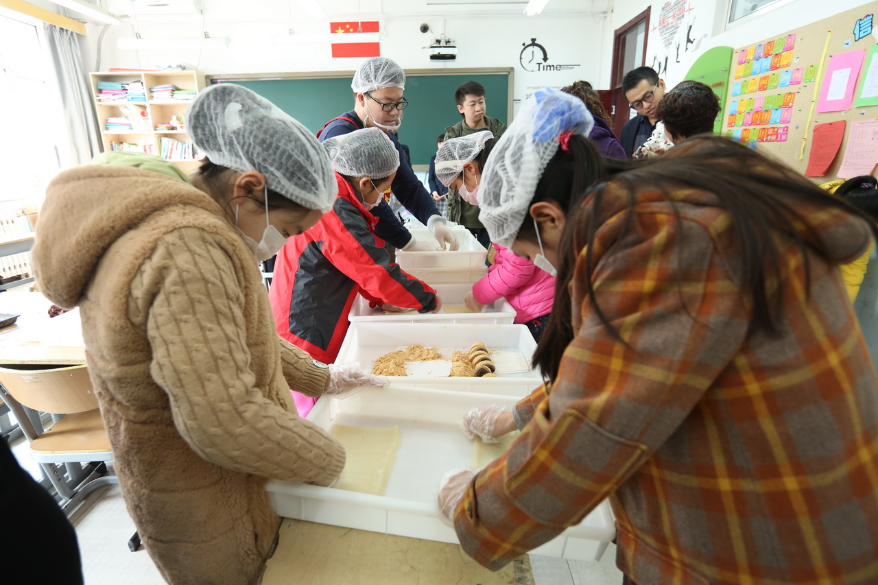 观看完表演后,学生们凭借着体验劵分散到相应的场地参加活动。传统文化体验项目包括“风筝”、“兔爷”、“泥人”、“面人”、“剪纸”、“衍纸画”、“拓印”、“木版画”、“太平燕”、“毛猴”、“脸谱”等14项。这些项目由北京市各项民俗文化的传承人或知名专家学者为学生们现场展示并传授制作技巧,同学们参与其中享受制作的乐趣。
