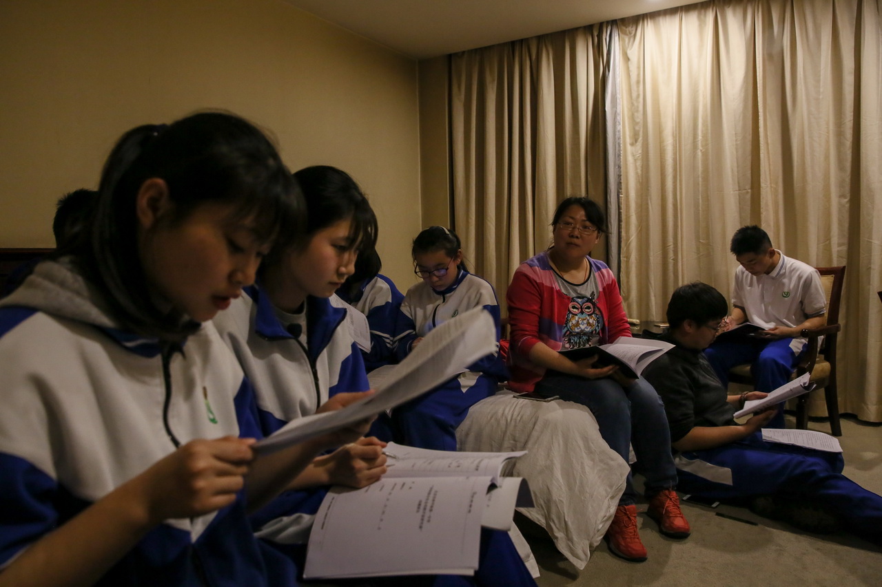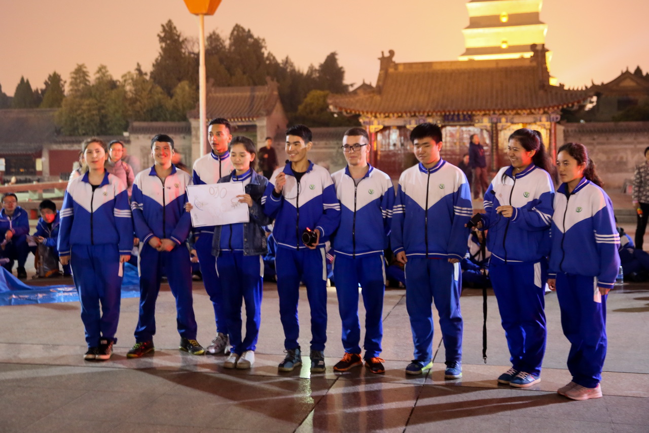 在大雁塔广场,举办了主题为“汉唐诗韵 对话圣贤”的传统文化经典诵读活动。同学们或齐声朗读,或分组朗诵,和自己的同伴,和研学老师一起,用不一样的形式、不一样的声音给古典诗词最好的现代诠释,给大雁塔的夜景平添了许多诗意。