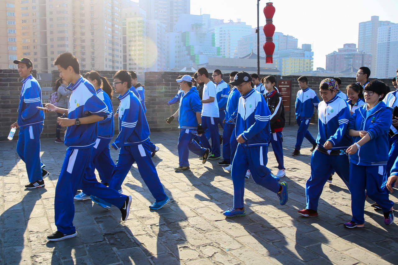 在西安明城墙上,举行了主题为“奔跑吧,和一man”的定向越野活动及诚信跑活动。活动开始前,王军主任对同学们进行了安全教育,并带领同学们进行了热身。所有同学分为两队,分别参加由王军主任带队的“诚信跑活动”和郑旭老师组织的“定向越野活动”。定向越野,考验了学生的耐力以及团队协作能力!诚信跑活动,暴走4公里,慢跑加速近10公里,考验的是体力,更多的是坚持。和一人不抛弃,不放弃,用自己的耐力和坚持,在明城墙上留下难忘的一幕幕。