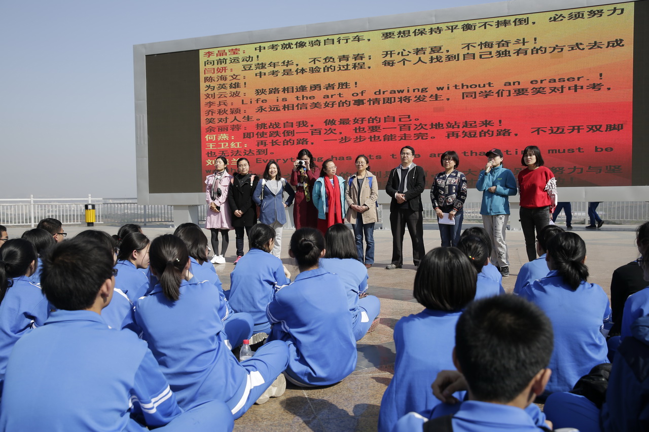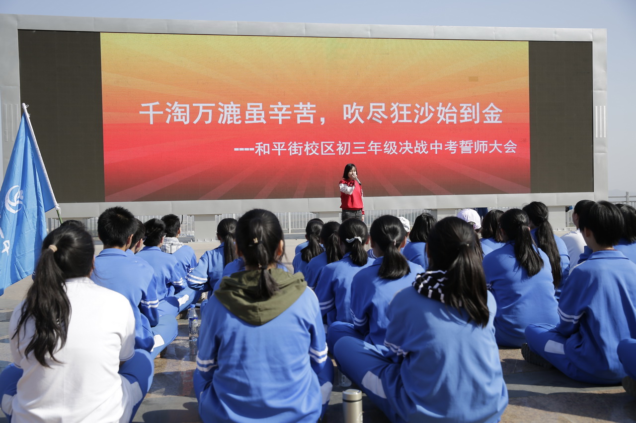 为了增强学生迎战中考的信心,营造良好的学习氛围,2017年4月13日,和平街一中和平街校区初三年级110名师生在密云蔡家洼举行了“千淘万漉虽辛苦,吹尽黄沙始到金”决战中考誓师大会暨徒步远足拉练活动。学生发展处张信海主任、教务处黄国会主任出席了誓师大会。大家济济一堂,共同见证这令人激动的时刻。