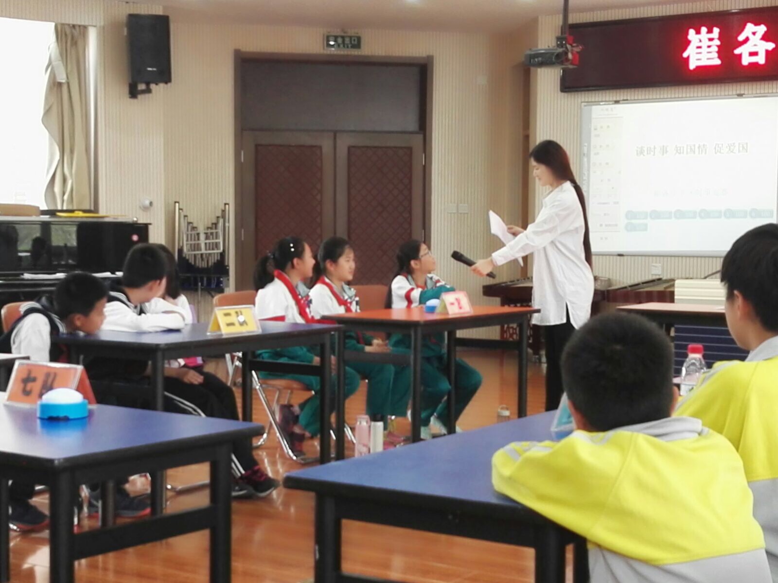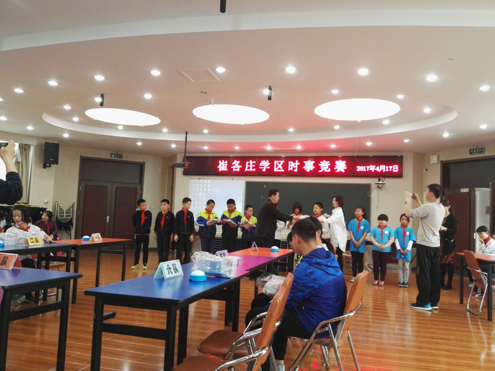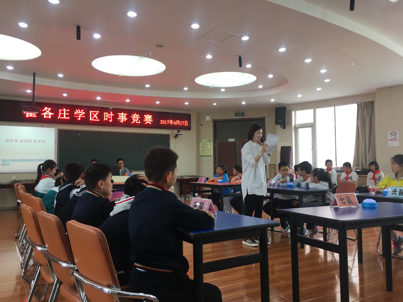 为了加强学区各校之间的交流互动,推动区域德育工作进一步发展,2017年4月17日,崔各庄学区组织学区13所学校在花家地实验小学开展了主题为“谈时事 知国情 促爱国”的时事竞赛活动。此次活动得到了崔各庄学区理事长、和平街一中陈秀珍校长,副理事长、花家地实验小学安海霞校长及各校校长的大力支持。