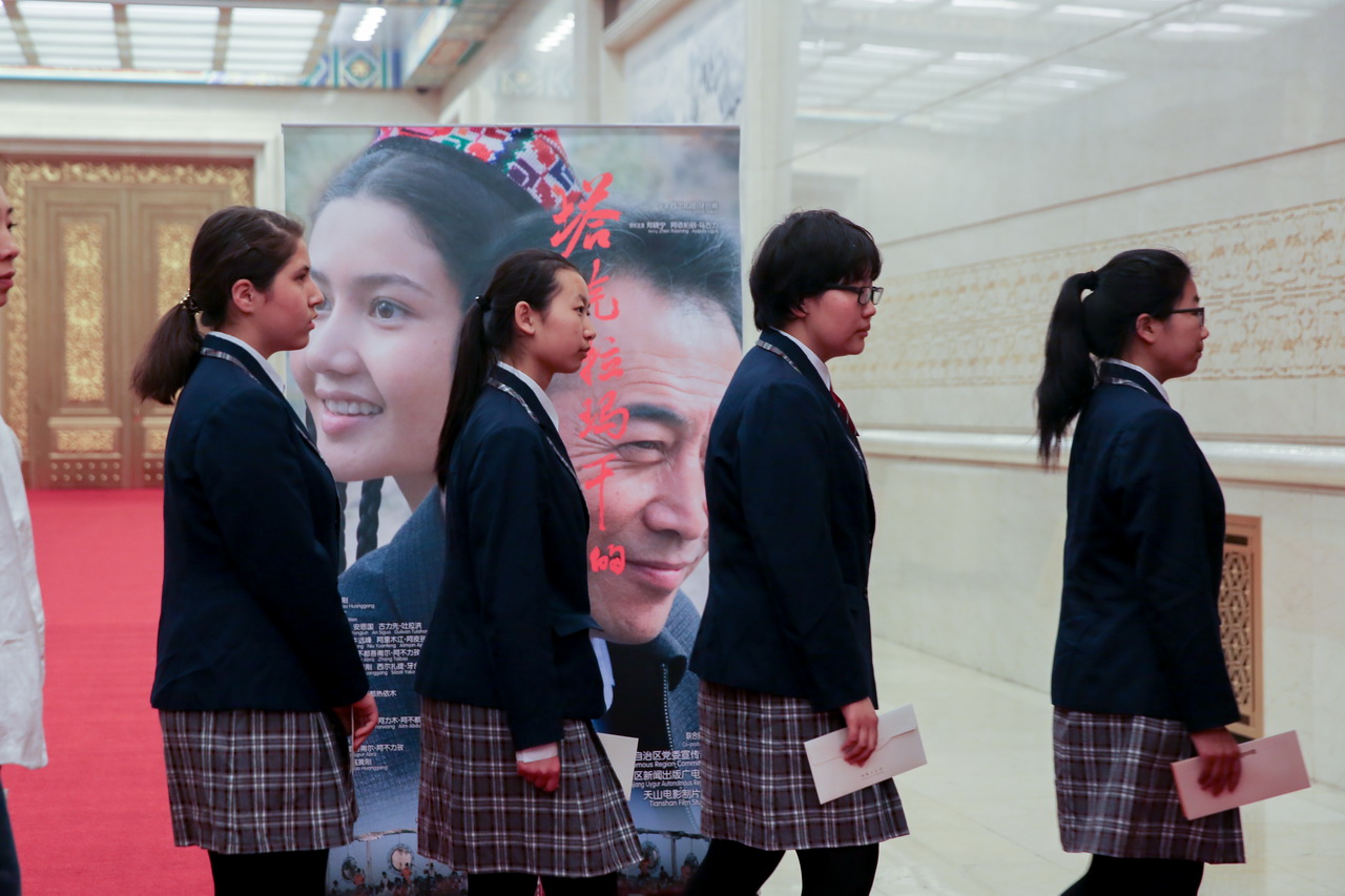 2017年4月17日,和平街一中内高班预科、高一年级学生,高一、高二年级内地班优秀学生代表应邀在北京人民大会堂观看了由天山电影制片厂摄制的电影《塔克拉玛干的鼓声》盛大首映式。