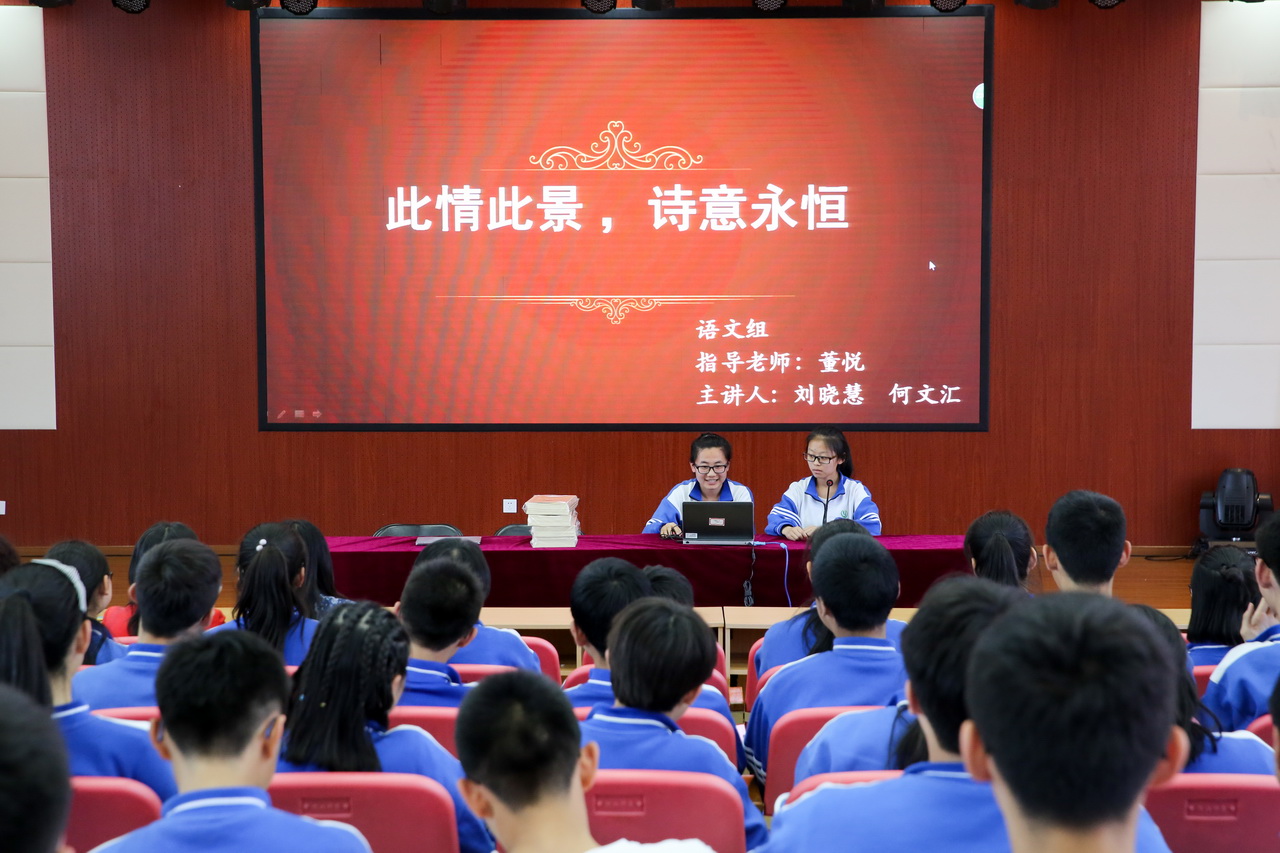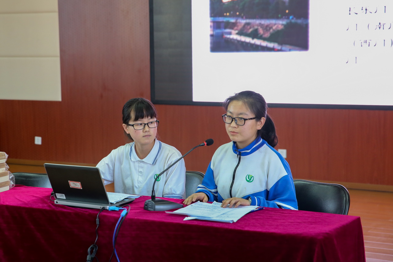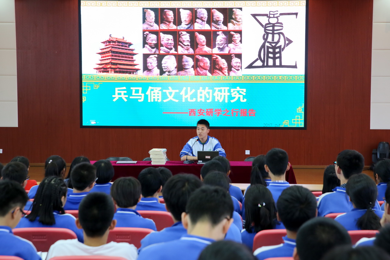 一句“客从长安来,还归长安去”把同学们的思绪从学校再次拉回到前些天的西安之行。同学们分成七组,按照抽签顺序,依次上场,分别从成员构成、开题的题目及意义、研究内容、前期准备、研究方法、研究成果等方面进行了精彩呈现。