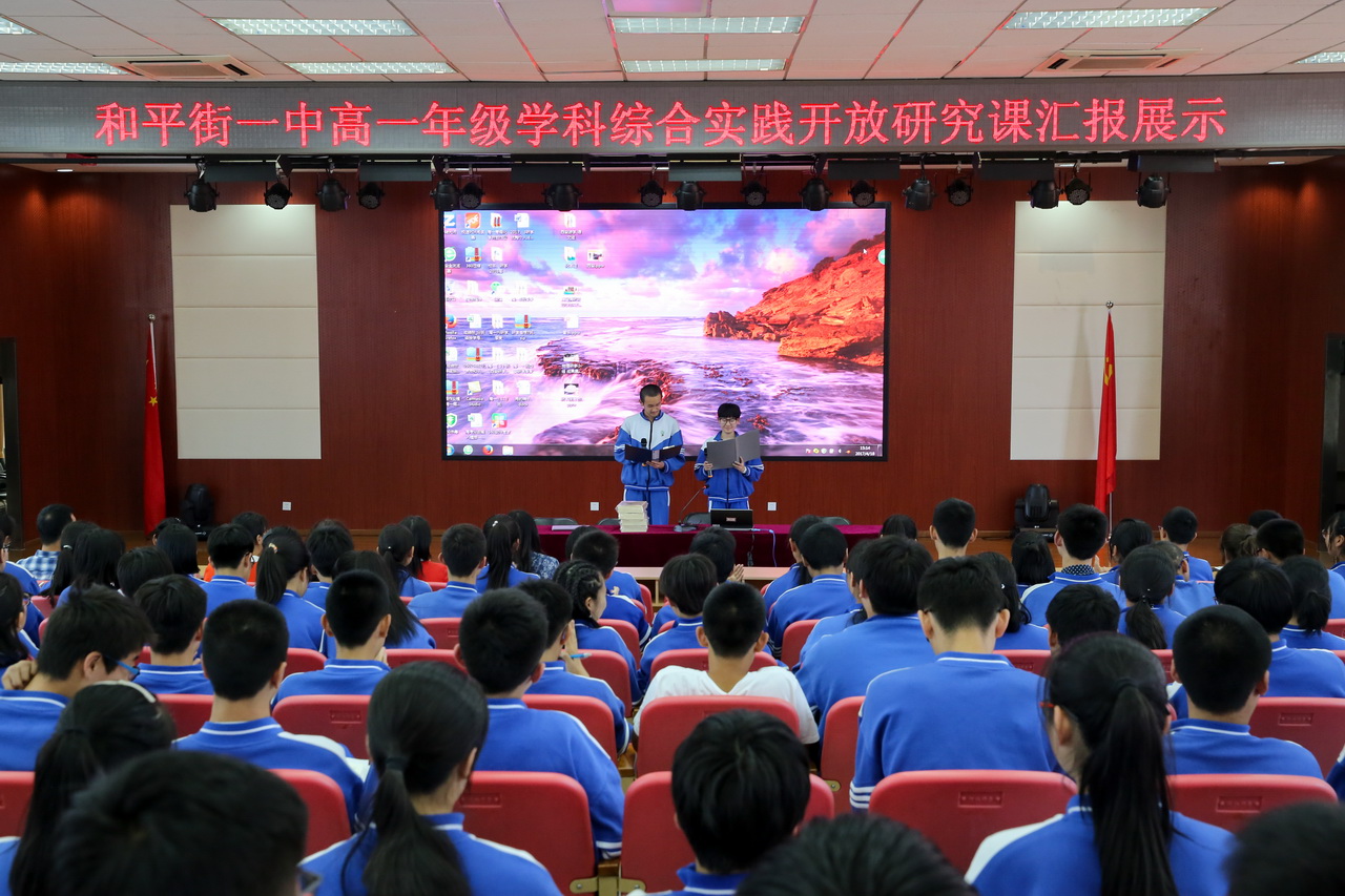 为了更好地总结本次学科综合实践开放性研究课的成功经验,让同学们深刻体会、感悟、践行活动精神,2017年4月18日,和平街一中北苑莲葩园校区高一年级举行了学科综合实践开放性研究课总结会。周建萍副校长、王军主任、洪娟主任、李翠娟老师、高一年级全体班主任、部分研学教师出席了此次大会。会议由高一6班李重、刘蕊同学主持。