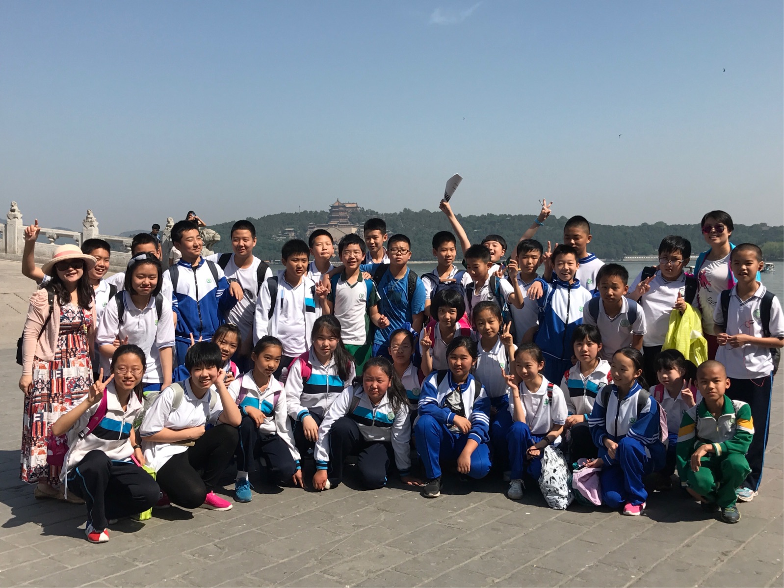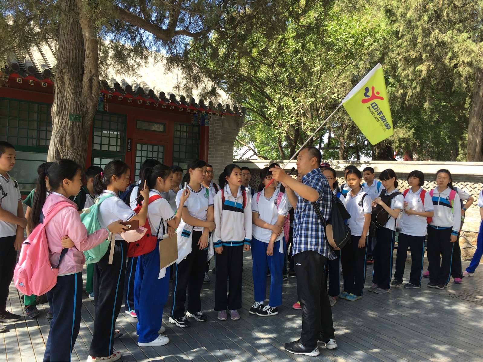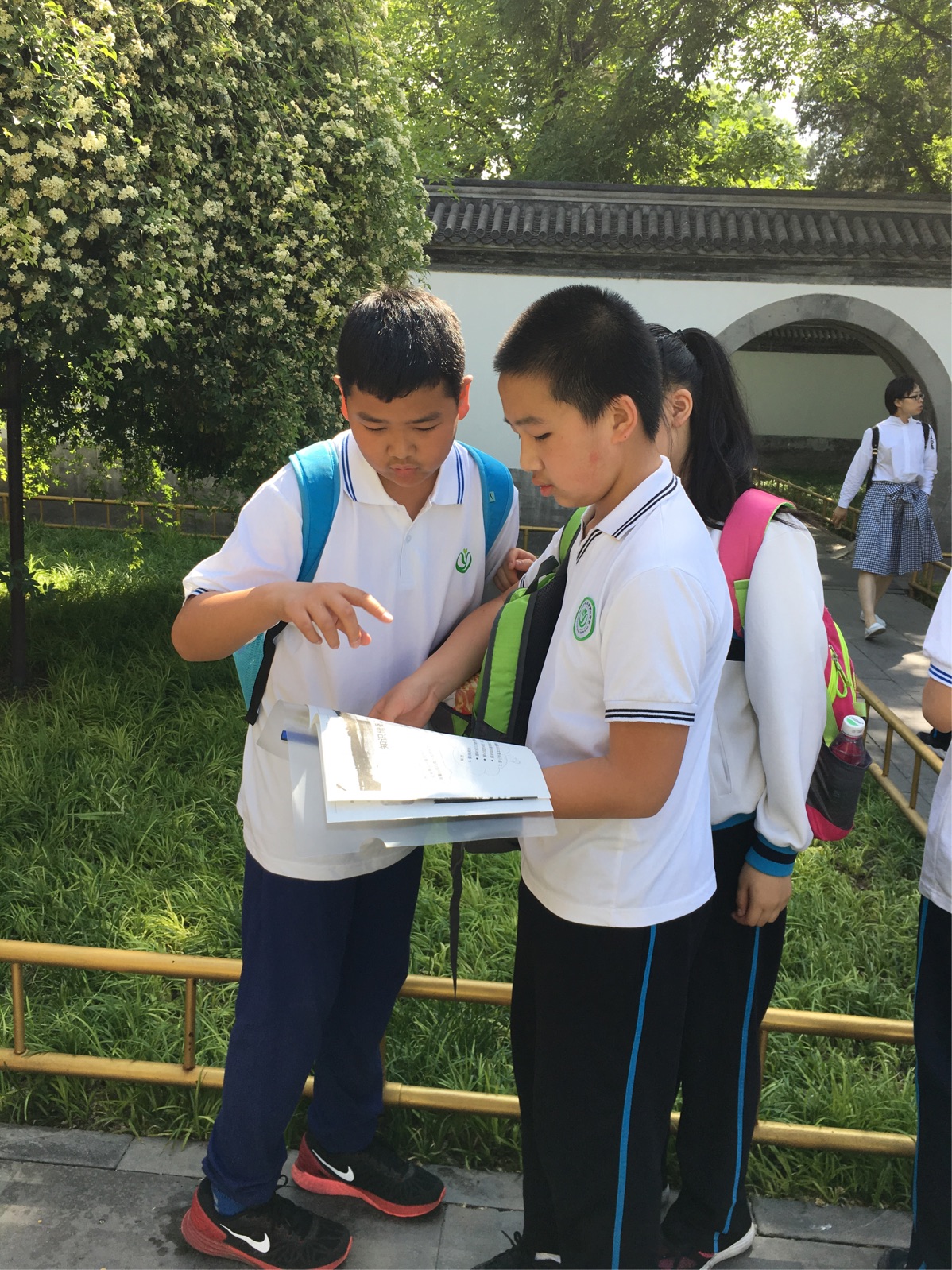 在颐和园,六年级学生认真听导游讲解各个景点的历史由来,大家分成小组三五成群的进行研究讨论,认真完成实践活动学习单。颐和园的美景吸引师生们驻足,时间的脚步却是匆匆,让大家慢慢品味、慢慢回忆。