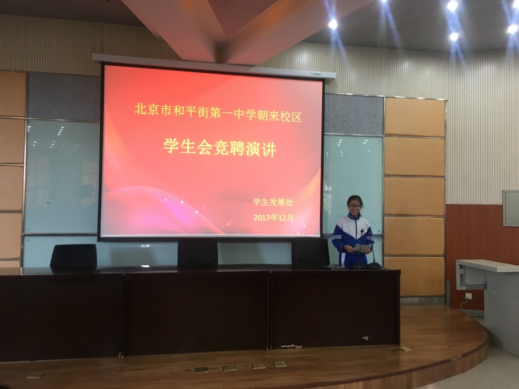 和平街一中朝来校区为期一个月的学生会招新活动于2017年12月11日圆满结束。自11月中旬发布招新通知以来,学生们便积极踊跃报名,热情高涨地参与。经过填写申请表、教师推荐、面试筛选、竞聘演讲层层选拨,从160名报名者,最终选出38名学生会成员,他们将在文体部、监察部、生活部、科技部、心理部、学习部等六个部门,发挥各自才能,服务于同学,服务于学校!