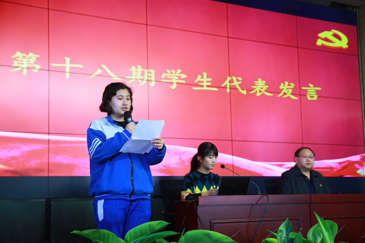 高二7班伊丽米努尔同学作为第十八期业余党校学生代表发言。她和同学们分享了自己在党校学习的经历以及她对新一期学员的希望和建议。