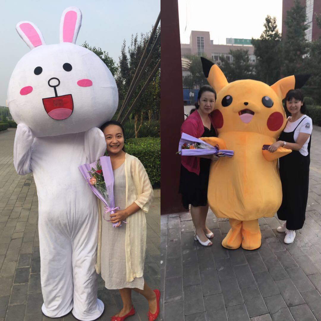 早上6:30,学生装扮的玩偶就在门口等待老师们的到来,为他们送去拥抱;学生志愿者到校为老师们送上鲜花,引导老师们进行抽奖;到校的每一个学生都在便签纸上写上对老师祝福的话语,贴在“教师节快乐”的展板上。校园内回荡着学生们的一声声“祝老师教师节快乐”“老师,您辛苦了”,老师们脸上洋溢着幸福的笑容。