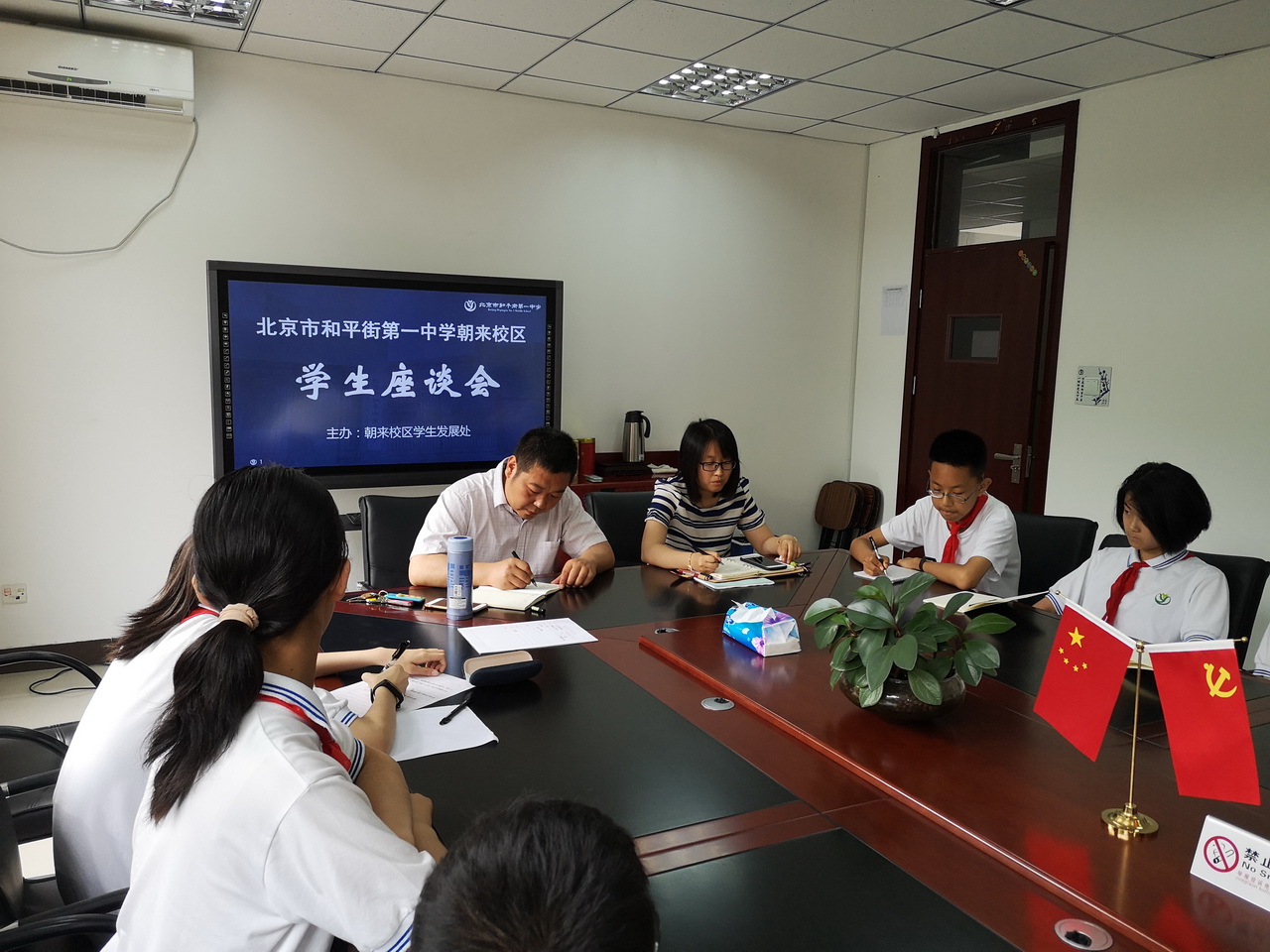 为了深入地了解学校的教育教学状况,听取学生意见,明确学生需求,不断提升校区办学水平,2018年5月15、16日,和平街一中朝来校区召开了期中学生座谈会。座谈会由学生发展处组织,邀请了初一和初二年级各班的班长、学习委员和生活委员参加。会上,学生发展处张东辉主任和韩晓佳主任鼓励同学积极客观地提出学校在各个方面存在的问题,并表示将如实地把学生们提出的存在的问题反馈给学校相关部门,积极落实整改。