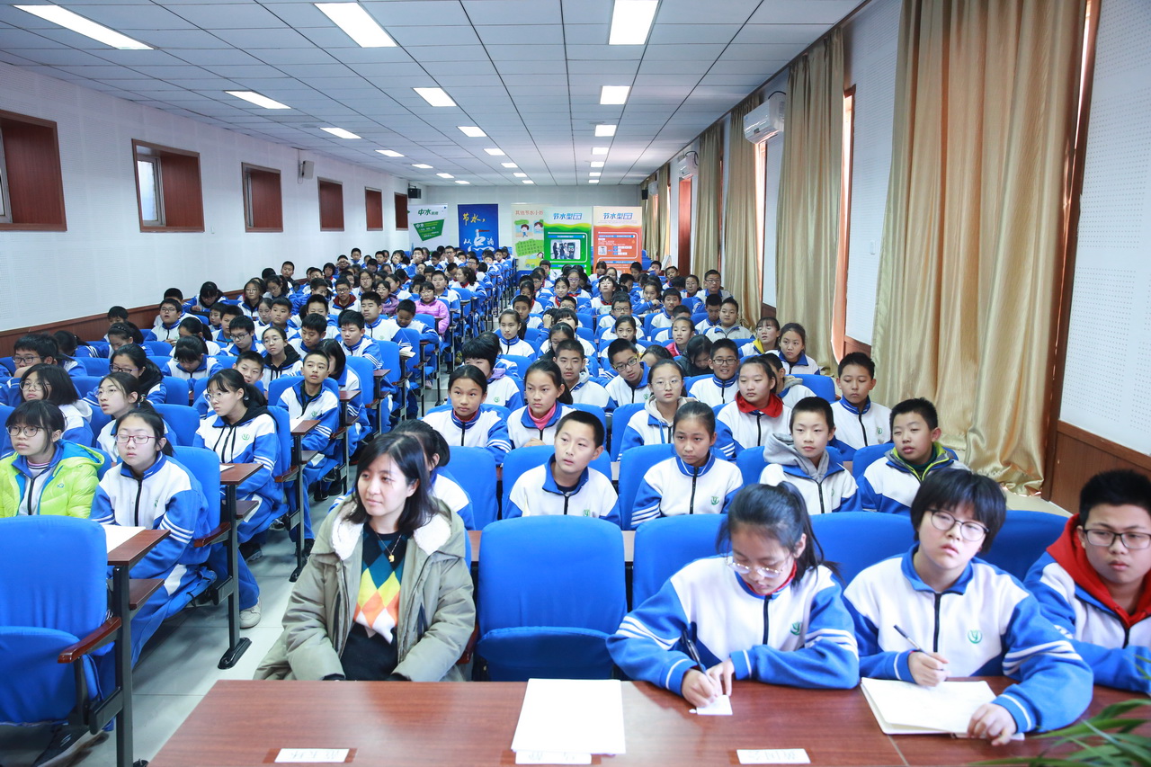“节水、节电、节粮”是习主席对全国青少年提出的号召。为培养学生节水的好习惯,使其了解节水的好方法,2018年12月7日中午,和平街一中和平街初中校区举行了“从身边点滴小事做起,树校园节水文明之风”节水公益讲座。初一年级全体学生认真聆听了讲座。
