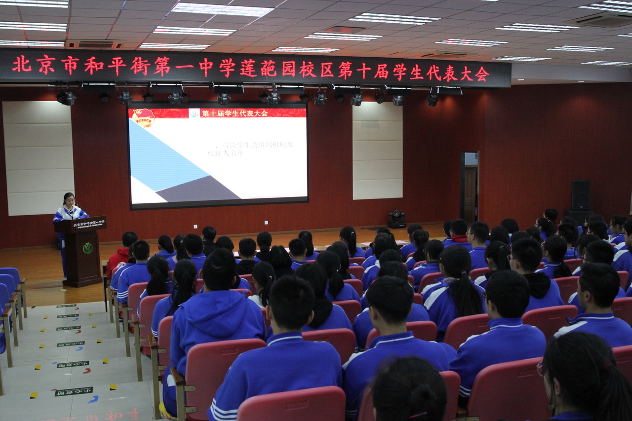 为了充分发挥学生会的桥梁和纽带作用,培养学生的民主意识,同时,选举产生新一届学生会成员,开创校区学生会工作新局面,2018年12月28日,和平街一中莲葩园校区第十届学生代表大会第一次会议大会在阶梯教室圆满召开。学生会全体成员、各班学生代表参加了大会,周建萍副校长、刘鹏校助、李怀东校助、王军主任、洪娟主任、德育教导员王建玲老师、宇建华老师、刘争老师出席了本次大会。