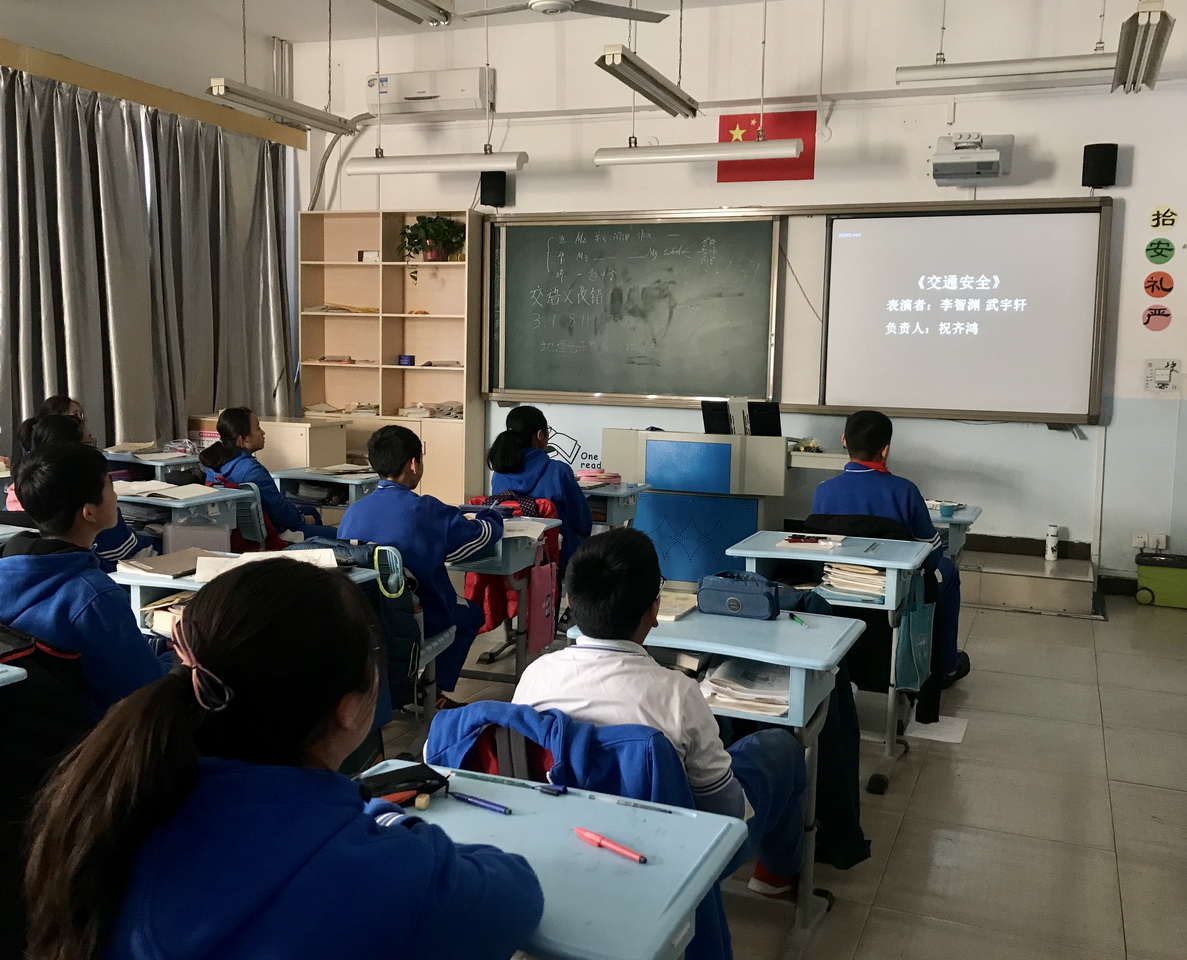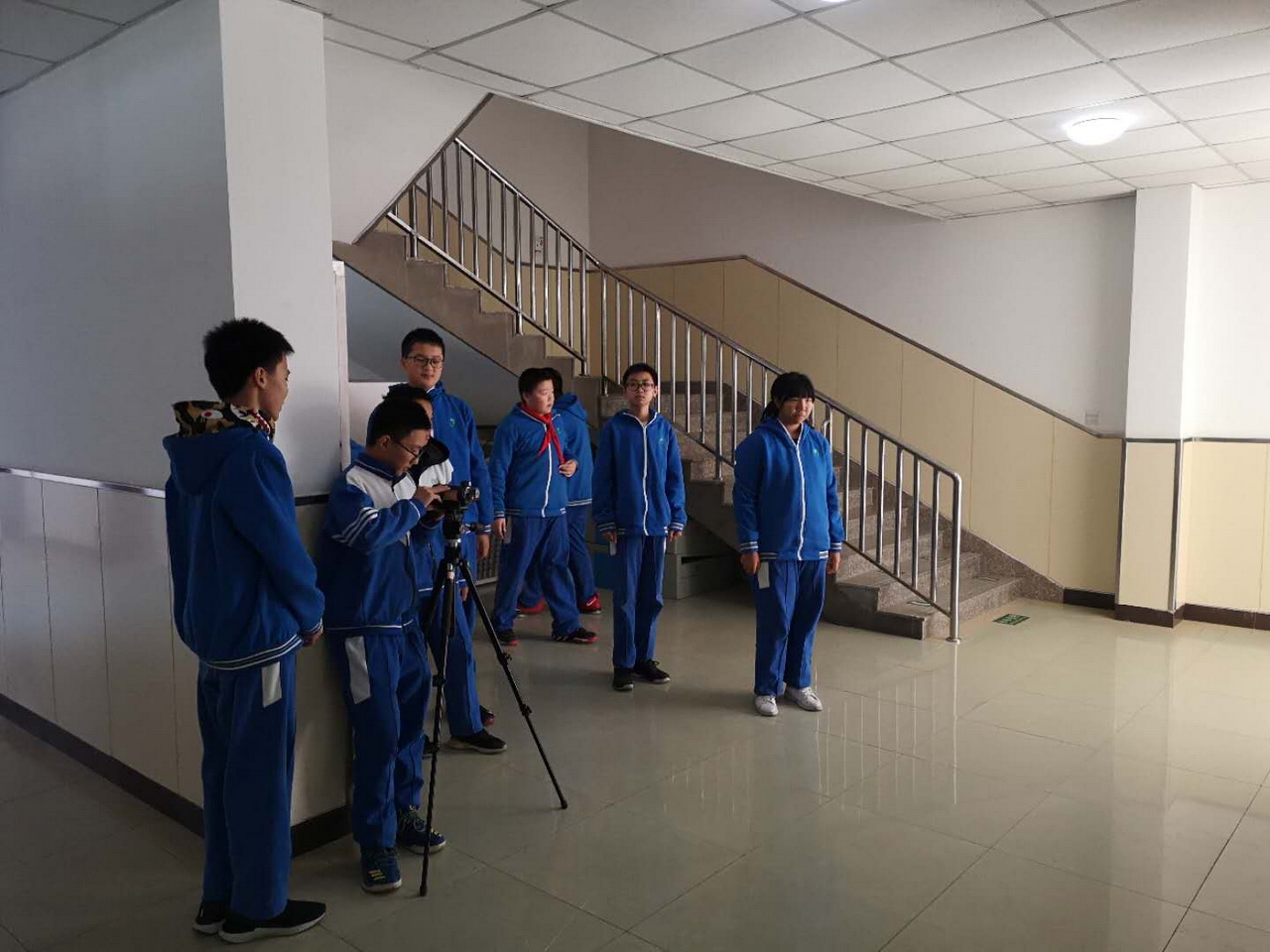 其次,征集不同的表演形式,并招募有摄影和后期制作特长的学生。朝来校区安全教育班会中,学生通过相声、小品、情景再现等多种形式进行安全教育方面的表演。监察部同学结合表演形式,再次修改脚本,与表演人员进行沟通,最终定人员定形式定剧本。并通过学生推荐、监察部成员考核,最终确定初二(7)班任栩辉同学为“御用”摄影师兼后期制作。