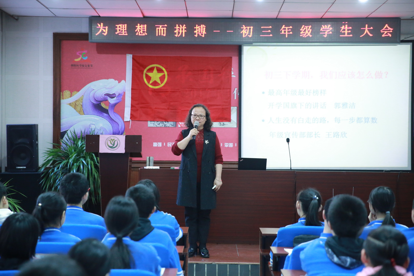 2019年3月6日下午,和平街一中和平街初中校区主题为 “为理想而拼搏”的初三年级学生会在礼堂举行。年级组长余丽蓉老师主持会议,教学、德育主管领导和各班班主任老师参加了会议。