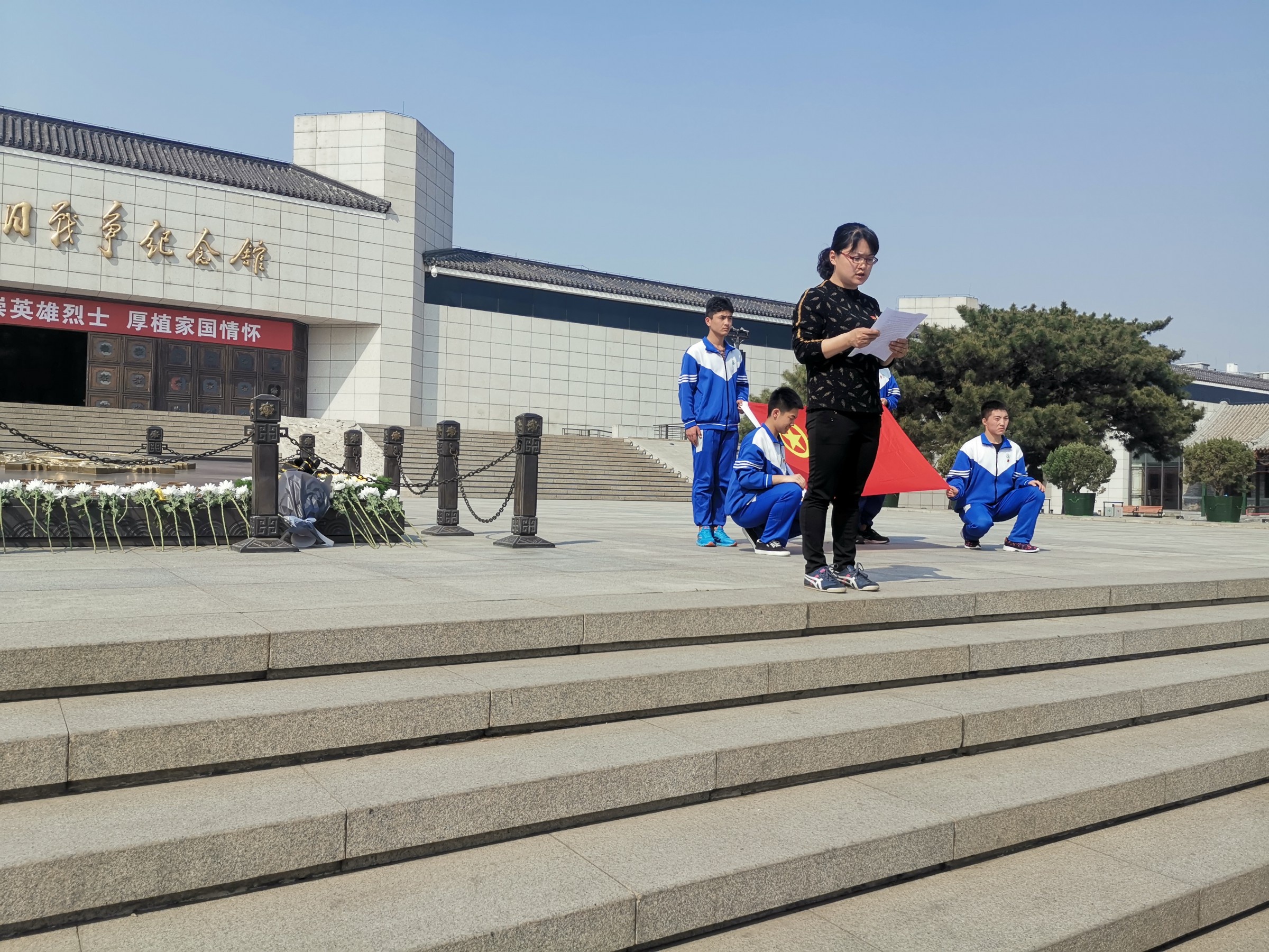 4月4日,近百名师生来到了抗日战争人民纪念馆,举行抗日战争人民纪念馆默哀仪式,旨在铭记历史,崇敬英烈,更好地前行。在抗日战争纪念馆前,师生整齐列队、肃立默哀——向包括抗战英烈在内的各个历史时期为争取民族独立解放、捍卫国家主权而英勇献身的无数革命先驱致敬。年级组长刘芹老师语重心长告诫大家:要尊重历史、牢记历史,并激励同学们为中华民族美好的未来而奋斗。默哀仪式结束后,学生们还参观了纪念馆。看着一件件珍贵的革命文物,一张张泛黄的历史照片,一段段感人的文字介绍,深深地打动着在场的每一个人。