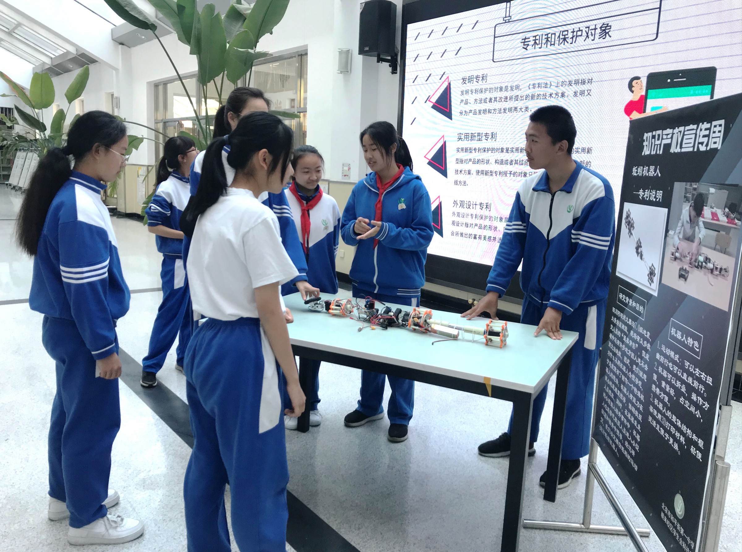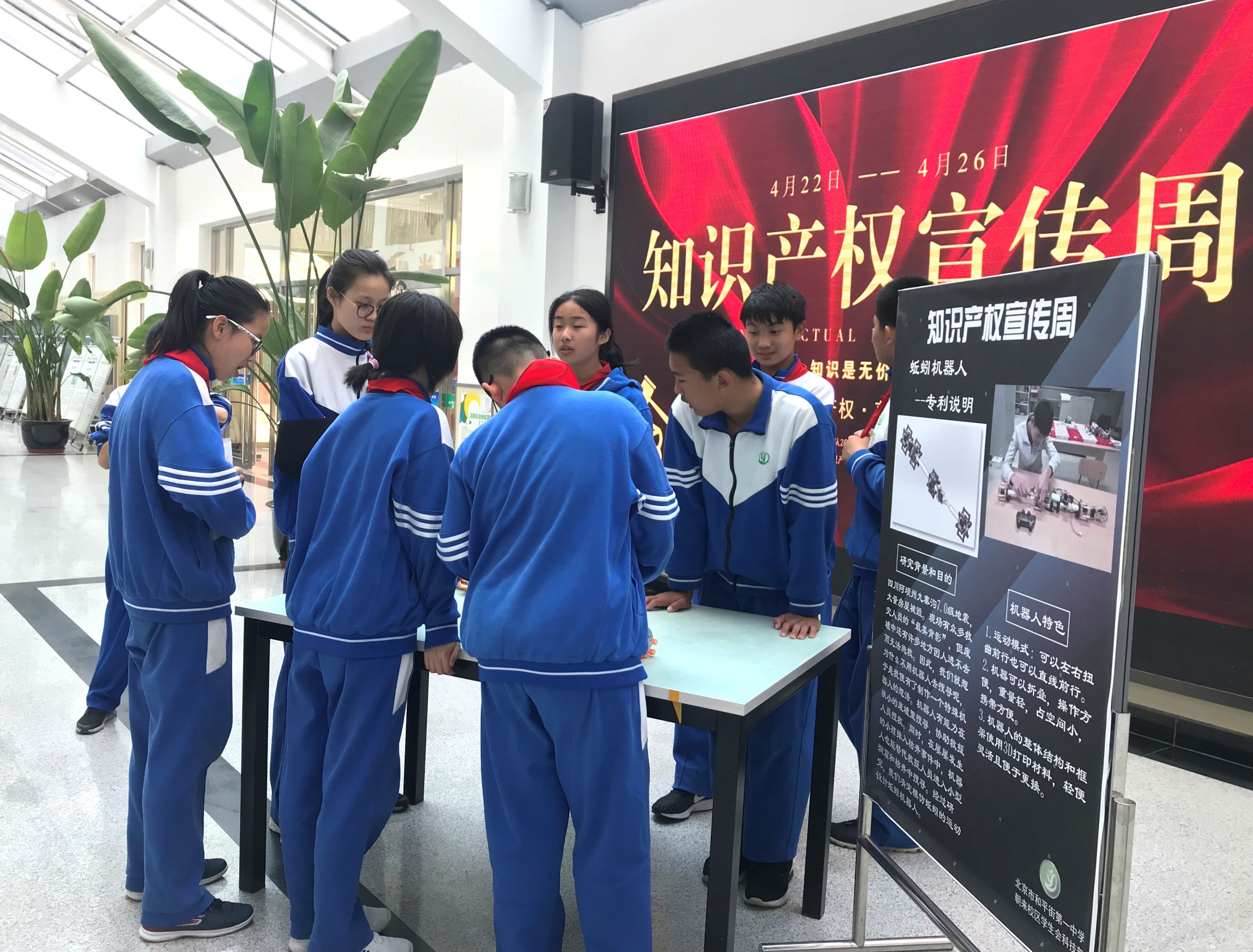 4月26日是世界知识产权日。为落实国家创新驱动发展战略,加强知识产权宣传普及,提升学生的知识产权意识,大力推进以“尊重知识、崇尚创新、诚信守法”为核心的知识产权文化建设,更好地发挥知识产权在科技创新过程中的引领和支撑作用,北京市和平街第一中学朝来校区于2019年4月22日至26日举办“知识产权宣传周”系列活动。本次活动主要包括知识产权讲座和我校专利成果展示两部分。