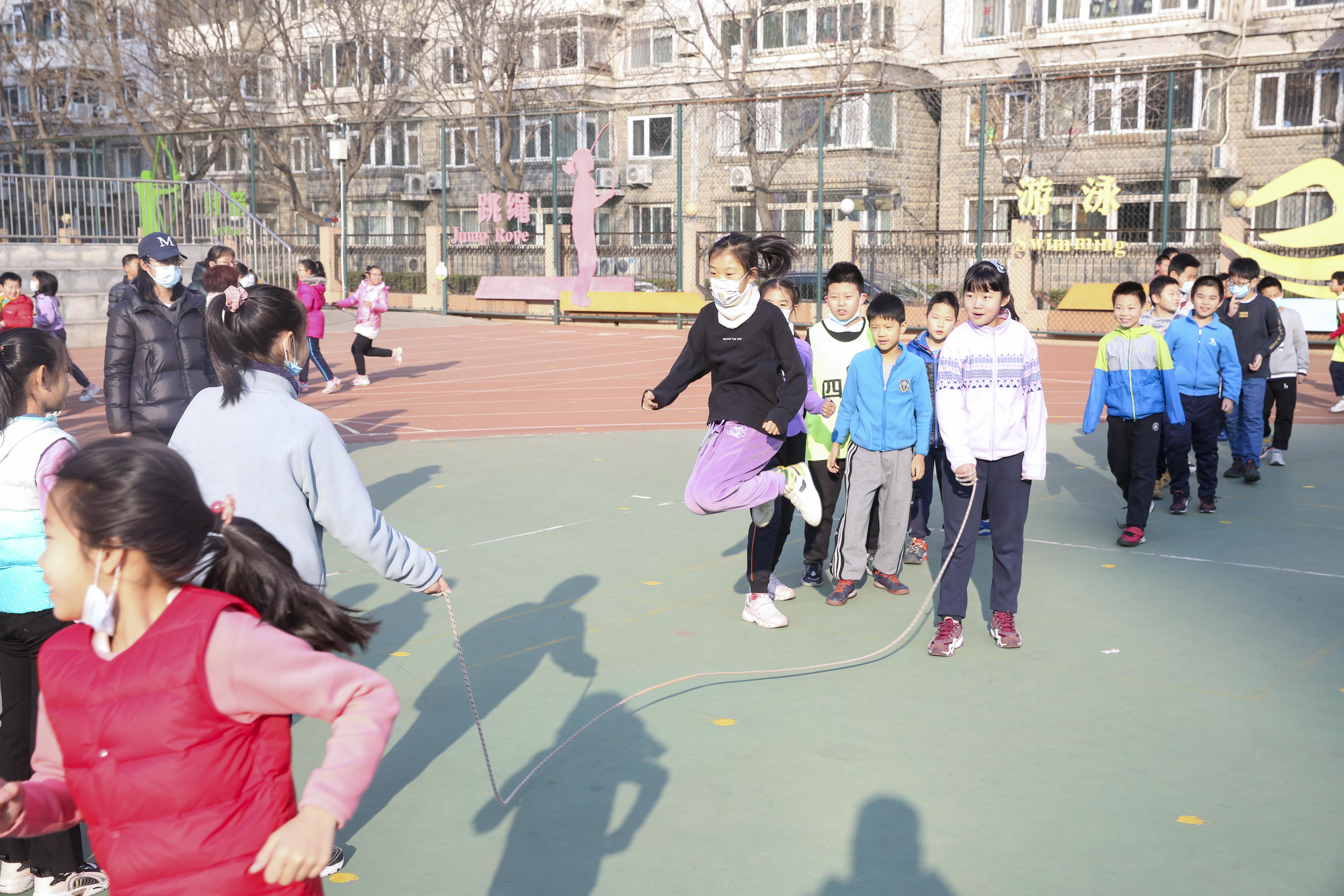 为落实“健康第一”的指导思想,提高学生体质健康水平,丰富学生文化生活,培养学生积极锻炼的良好习惯,让学生在享受阳光体育的同时,充分展示集体风采,由和平街一中清友园校区体育组承办的“阳光体育运动”跳长绳比赛于2021年12月22日正式拉开序幕。