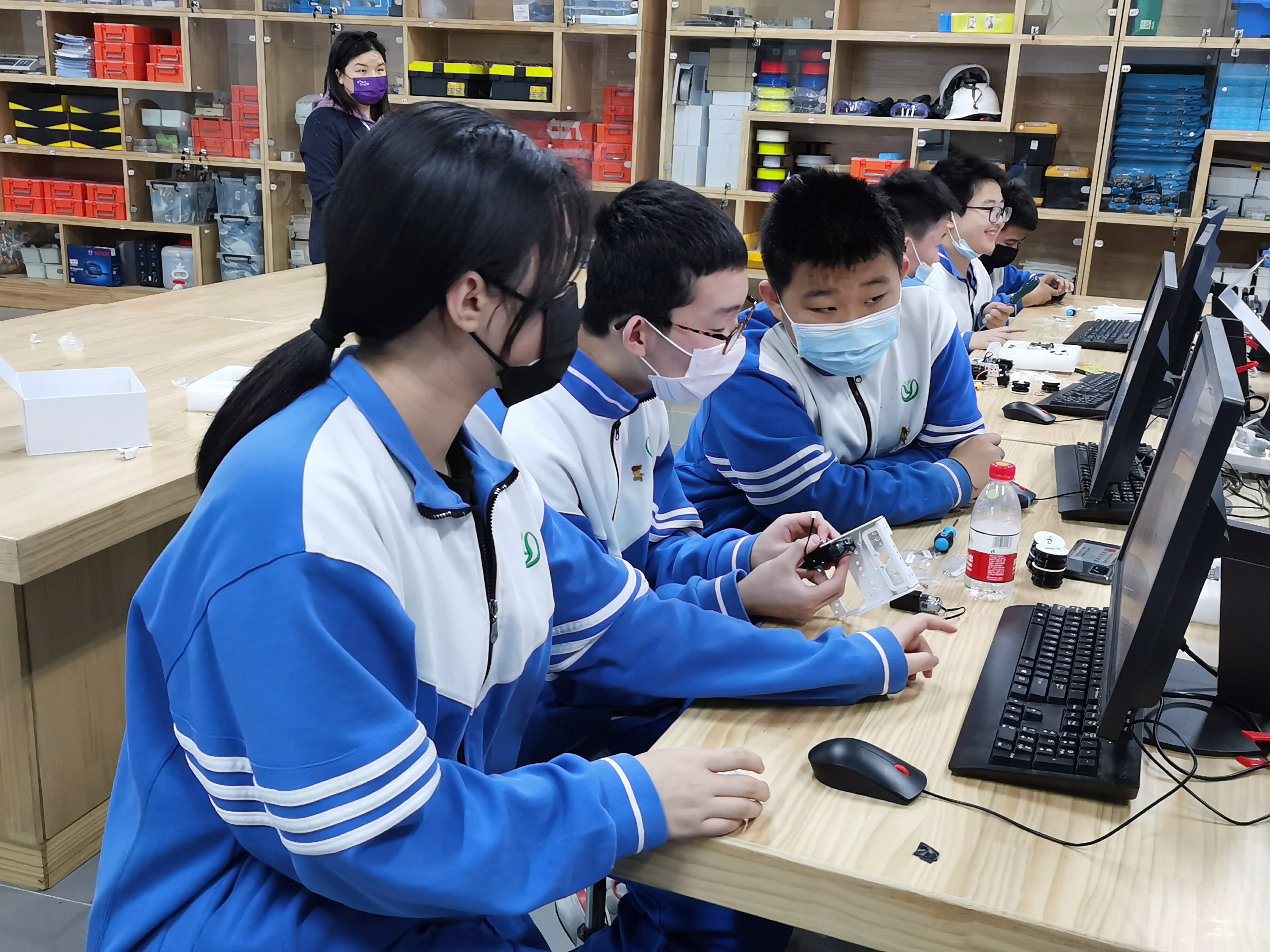 活动中,北京科学中心科技辅导员为同学们介绍了科学中心的建设和开放情况,讲解了交通领域的相关知识,使同学们对交通工具的发展历史、智能交通领域的整体发展现状及具体的产业案例有了更加深入的了解。师生们边参观、边交流,边体验、边实践。在科技辅导员的指导下,大家自己动手,设计搭建了履带式带机械臂无人车,并通过设计调整驱动履带式搬运机器人的结构,最终实现了完成道路清障的目标。一天的活动结束后,同学们纷纷表示非常喜欢这种形式的研学活动,不仅在动手动脑中学到科学知识,收获了快乐和喜悦,还提高了探索科技奥秘的兴趣。