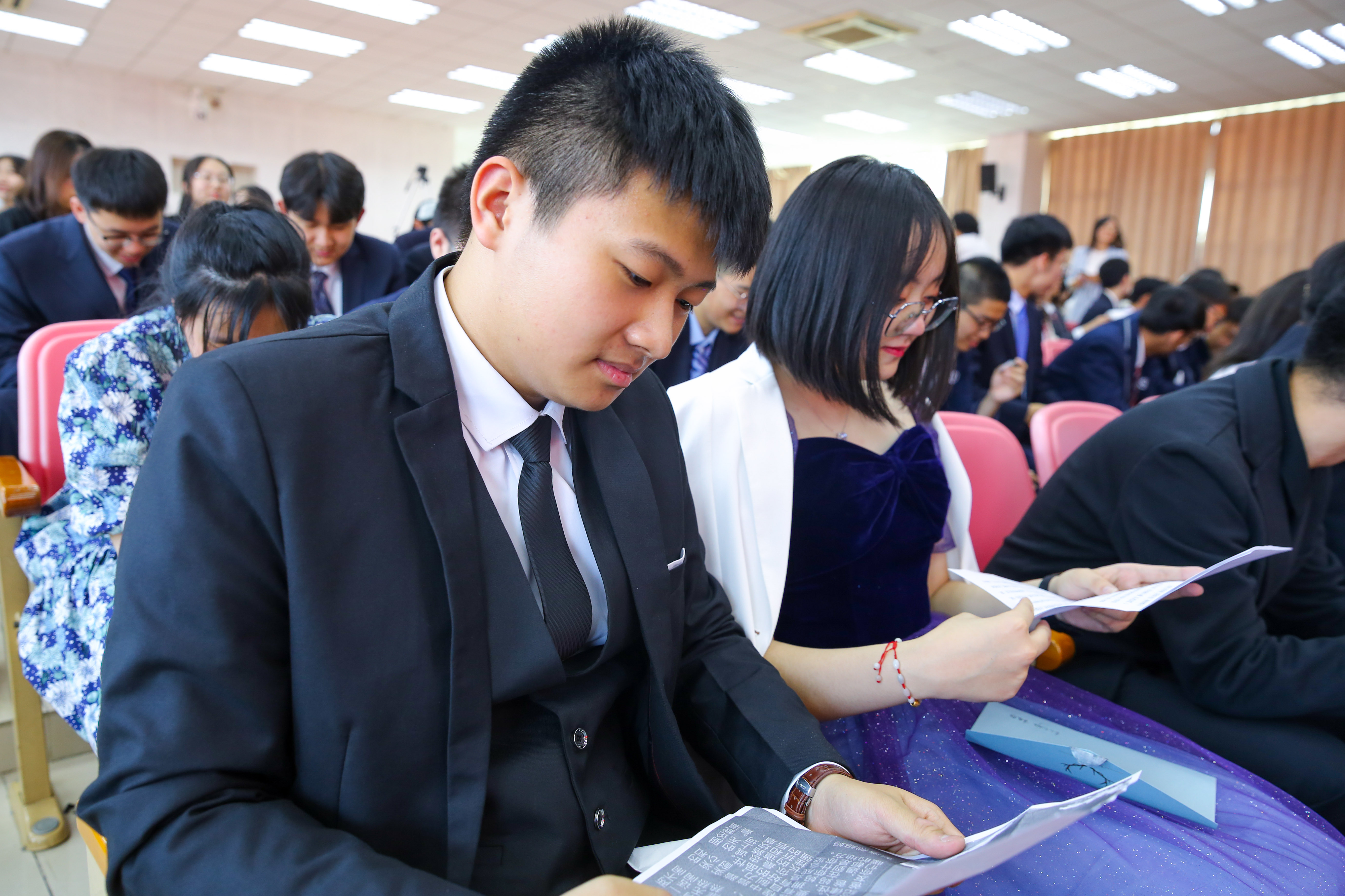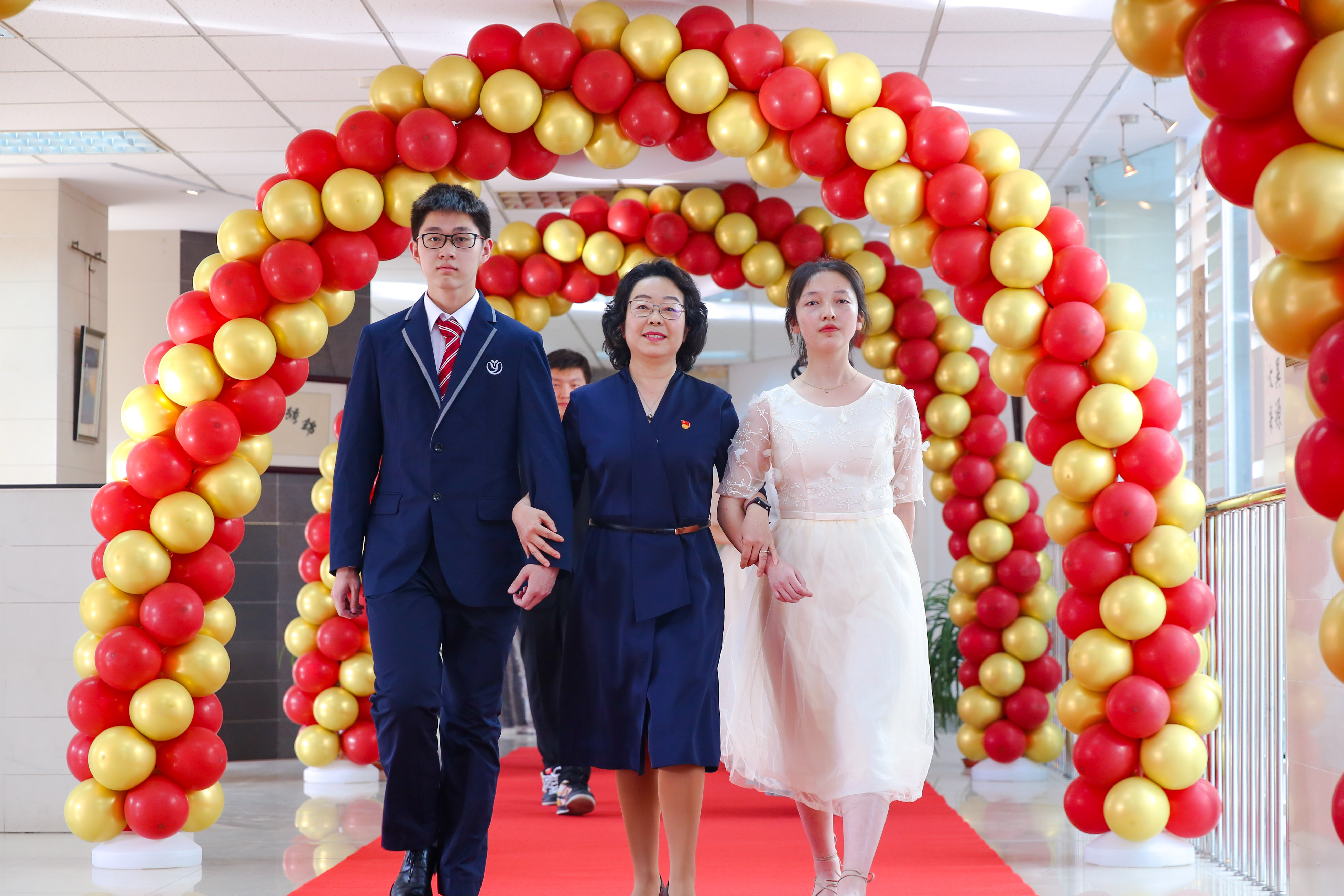 16点50分,高三的学子们身着制服,在领导、老师的带领下缓缓走过象征着成长的成人之门,步入主会场。会场上播放着学校精心准备的学生们从1岁到18岁的暖场视频。在升旗仪式之后,首先由家长、老师和学生共同表演诗朗诵《献给十八岁的你们》。家长和老师一句句深情的嘱托无不感动着每一个学生。紧接着马奥登塔娜的父亲作为高三家长代表也勉励孩子们要继续努力,成长为一个顶天立的人。因为疫情原因,无法邀请每位父母来参加孩子的成人礼,每一位父母都精心为孩子准备了一封长长的信,孩子们在成人礼这一天各自打开,接受父母的祝福。见字如面,这也是全场最令人感动的环节。