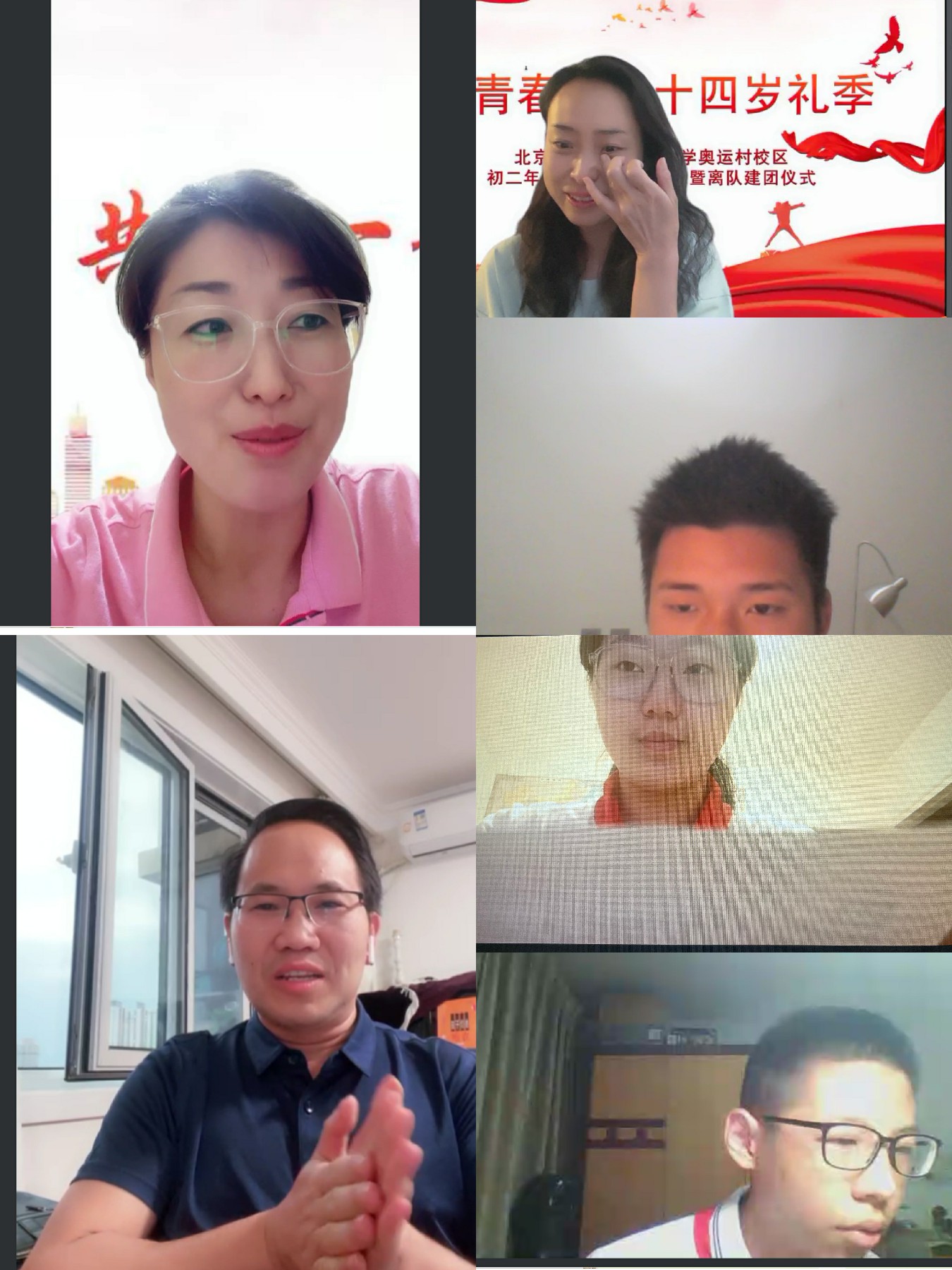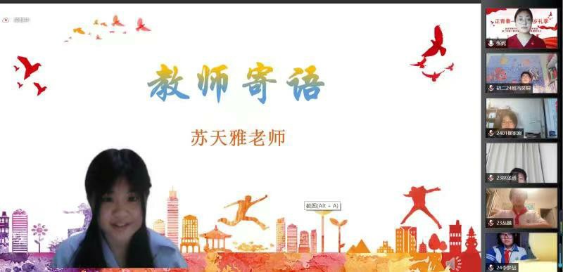 2022年6月7日晚,和平街一中奥运村校区初二年级全体师生家长相聚云端,共同举行“正青春——十四岁礼季”初二年级十四岁集体生日暨离队建团仪式。