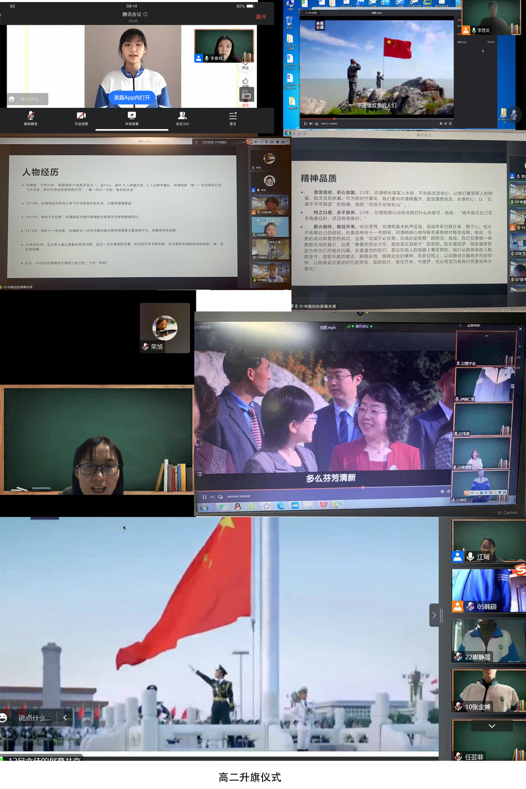 在线上教学期间,为落实教育教学常规管理,学校恢复了线上升旗仪式。11月28日,和平街一中和平街高中校区开展了第一次线上升旗仪式,此次升旗仪式由各班自主设计举行。为了使升旗仪式更加的规范和有教育意义,学生发展处在和各位年级组长、班主任沟通交流之后,对升旗仪式的规范与流程进行了统一,并制作了升旗仪式的流程模板,将国歌、校歌及国旗下讲话等视频内容加入模板,方便各班升旗仪式期间观看使用。
