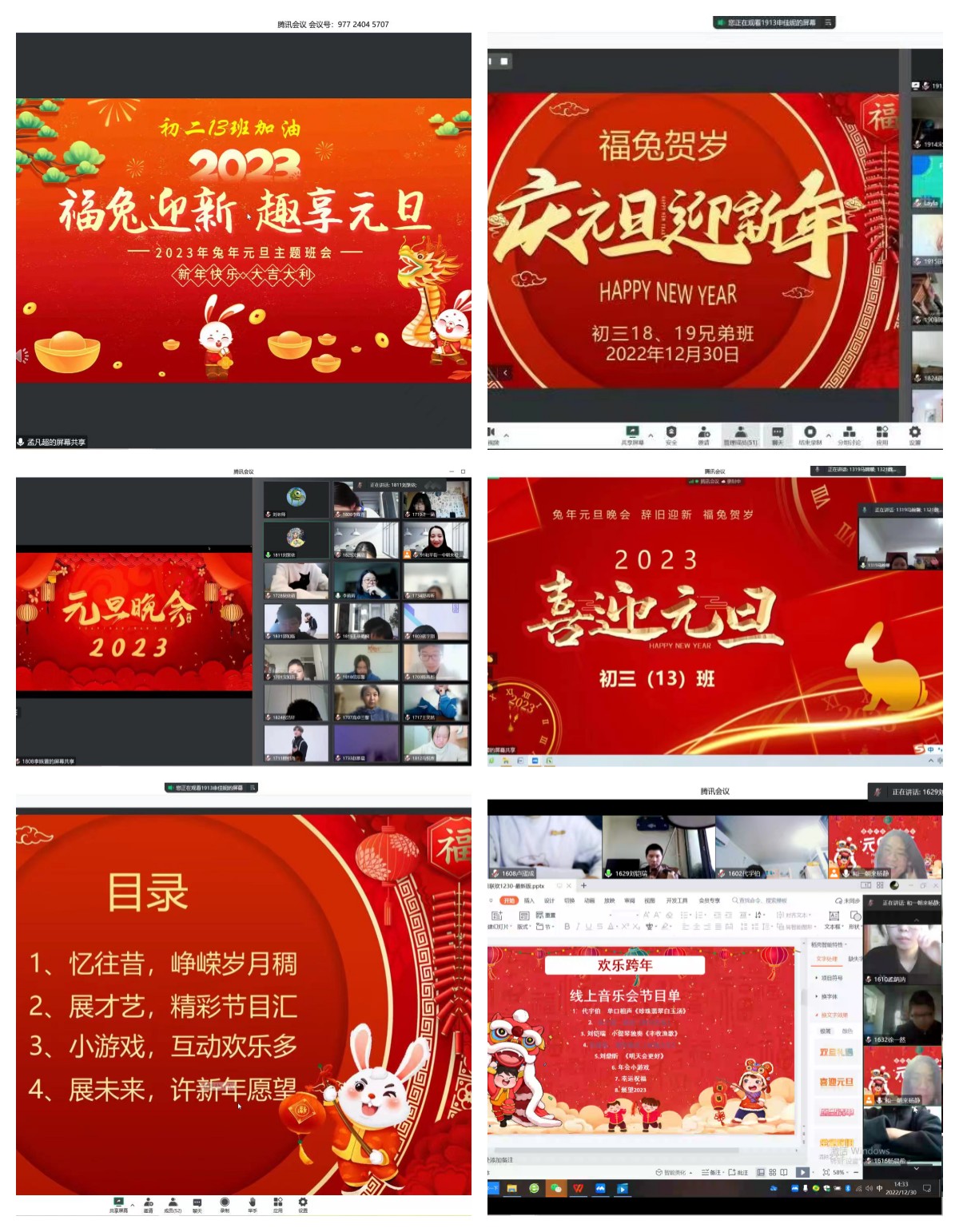 新岁将启,万象福临。2022年12月30日,北京市和平街第一中学朝来校区各班举办线上迎新年师生联欢会。纵使窗外寒风凛冽,也不能影响师生们辞旧迎新的火热心跳。纵使无法相聚一堂,也不能阻挡孩子们对未来的展望。