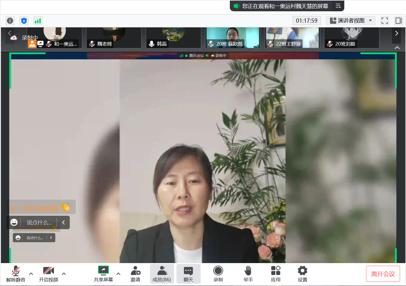 浓浓的情谊,深深的祝福,绵绵的怀念,切切的问候。岁月不居,时节如流。光辉灿烂的2022悄然过去,我们迎来了崭新活力的2023,为丰富学生居家文化生活,给学生提供展示风采的舞台,2023年1月4日,北京市和平街第一中学奥运村校区初一、初二年级举行了线上新年联欢会。校区领导、师生齐聚云端,以昂扬的精神姿态共同迎接兔年的到来。图1