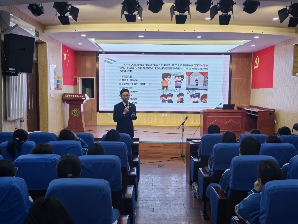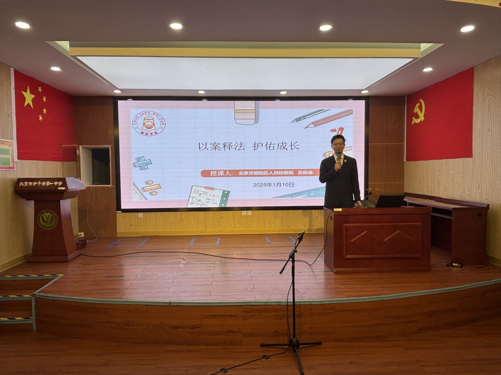 2025年1月10日,北京市朝阳区人民检察院检察官沈伯迪应邀来到北京市和平街一中和平街初中校区,为校区全体学生带来了一场精彩的法治讲座。讲座以“以案释法·护佑成长”为主题。沈检察官以案例为依托,重点围绕校园欺凌、未成年人犯罪预防及网络保护三个方面,从专业角度深入浅出地向学生进行普法教育,不断强化学生的道德意识、法治意识和自我保护意识,为学生健康成长保驾护航。