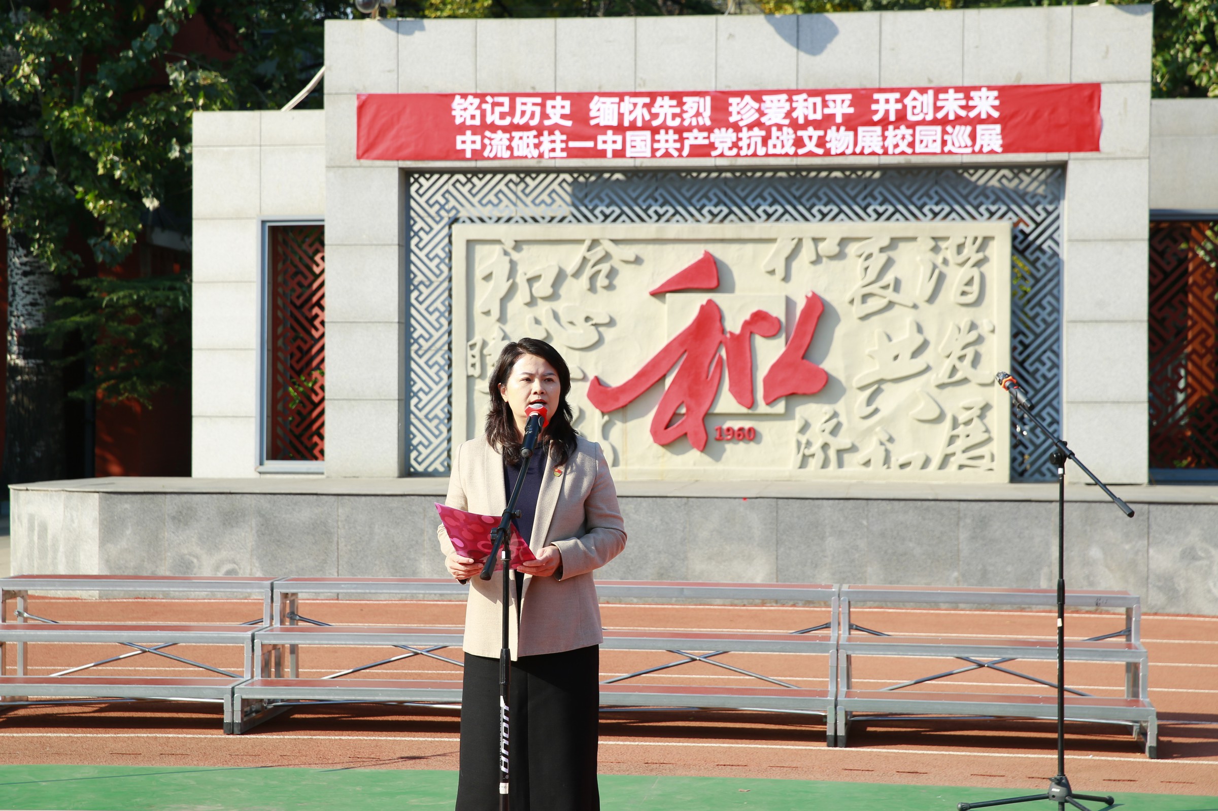 开幕式上,伴随着雄壮的《义勇军进行曲》旋律,五星红旗冉冉升起,全体师生肃立高唱国歌,目光和歌声中满是对革命先烈的崇敬与对祖国的热爱。杨艳校长在国旗下讲话中指出抗战文物是历史的“活化石”,更是红色基因的“载体”,此次巡展走进和一校园,希望同学们在触摸历史、聆听故事的过程中,深刻感悟中国共产党作为全民族抗战中流砥柱的担当,厚植家国情怀、锤炼品德修为,努力成长为能担当民族复兴大任的时代新人。
