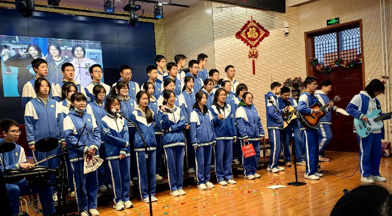 本次合唱展演各班围绕主题精心选曲、认真排练,活动内容丰富、形式多样。其中,和平街高中校区在温馨的新年祝福中拉开帷幕,合唱与文艺表演相映成趣;莲葩园校区注重学生自主组织,合唱与戏剧展演并举;奥运村校区邀请家长共聚一堂,国际曲目与校园歌声交织;朝来校区以全体齐唱《龙的传人》激昂开场,彰显文化传承与自信成长;和平街初中校区各班则在演唱中融入创意编排与现场伴奏,展现出鲜明的班级特色与艺术表现力。