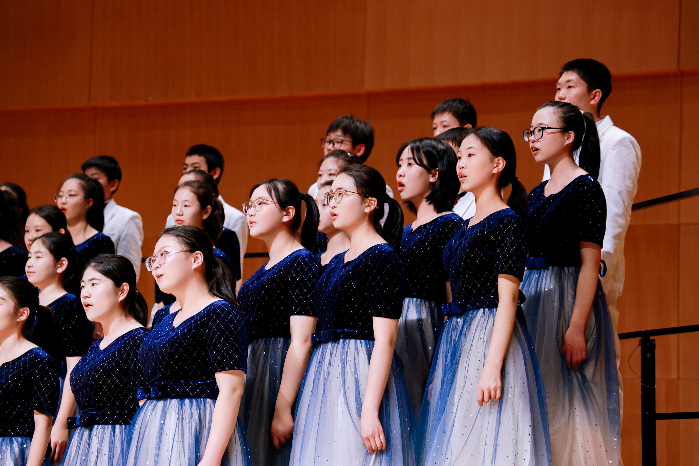 合唱舞蹈篇中,清友园校区青苗合唱团(朝花团)唱响哈尼族民歌《其多列》与英文曲目《We are the voices》,清澈童声纯净治愈;朝来校区和美合唱团带来《梨花又开放》《家乡》,旋律婉转深情;和平街初中校区和乐之声合唱团(朝花团)演绎《Non degu non》《与梦飞翔》,节奏明快、气势昂扬;和平街高中校区紫藤花合唱团带来《世界赠予我的》《越过森林》,歌声温柔又充满力量清友园校区七彩舞韵舞蹈团带来舞蹈《我家住在悬崖上》,舞姿灵动优美;集团成员校中国教育科学研究院朝阳实验学校唱响心声合唱团演绎《萱草花》,旋律温柔缱绻;奥运村校区初二 21 班班级合唱带来《快乐叮当》,充满童真童趣;奥运村校区初莺合唱团演唱南非民歌《Siyahamba》,独特的旋律展现出多元文化的融合之美;莲葩园校区阿玛斯合唱团带来《我怎样去爱你》《亚克西》,其中新疆民歌《亚克西》旋律欢快、风情浓郁,生动诠释了各民族文化交融的美好内涵,将现场氛围推向高潮。