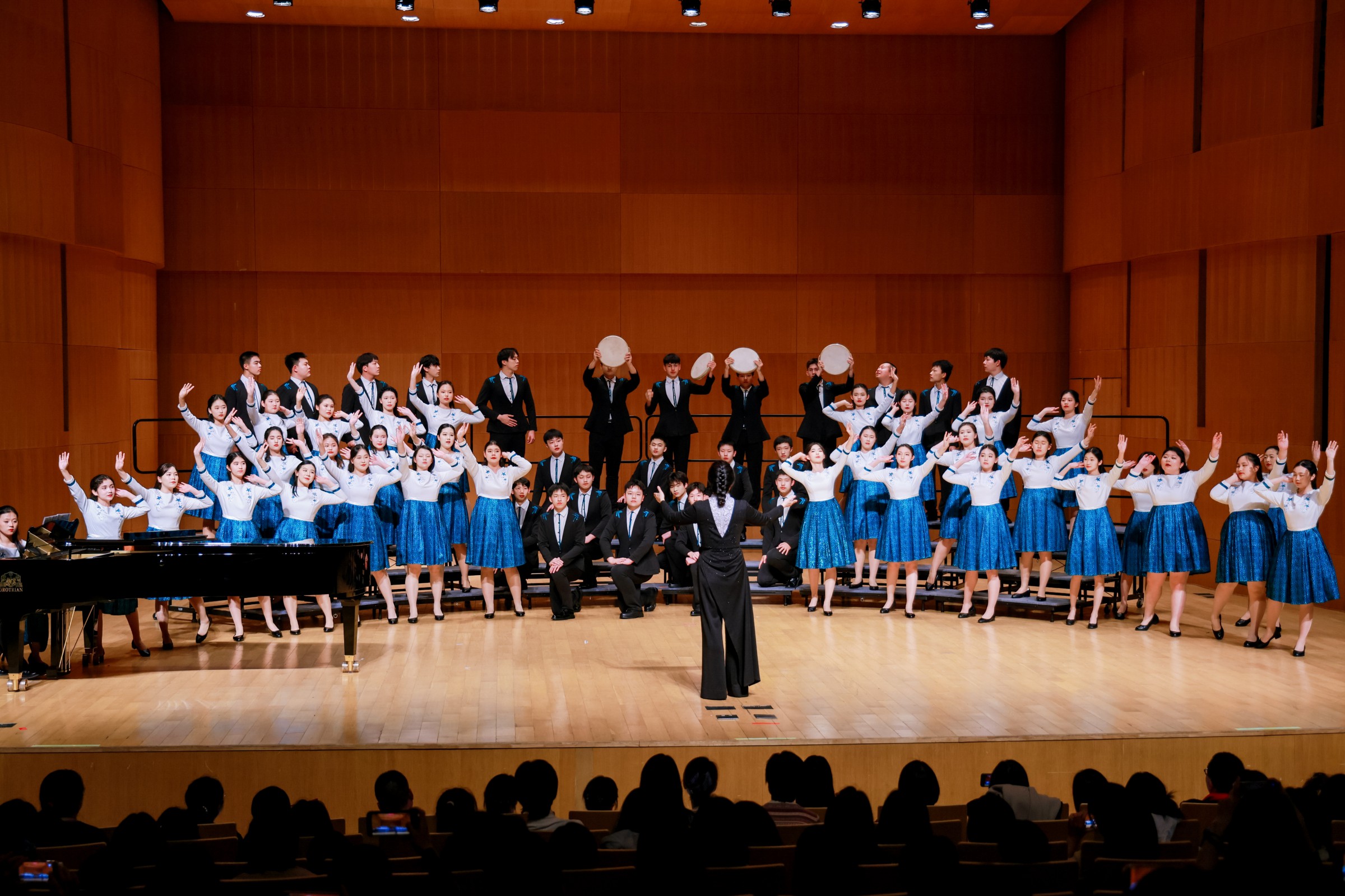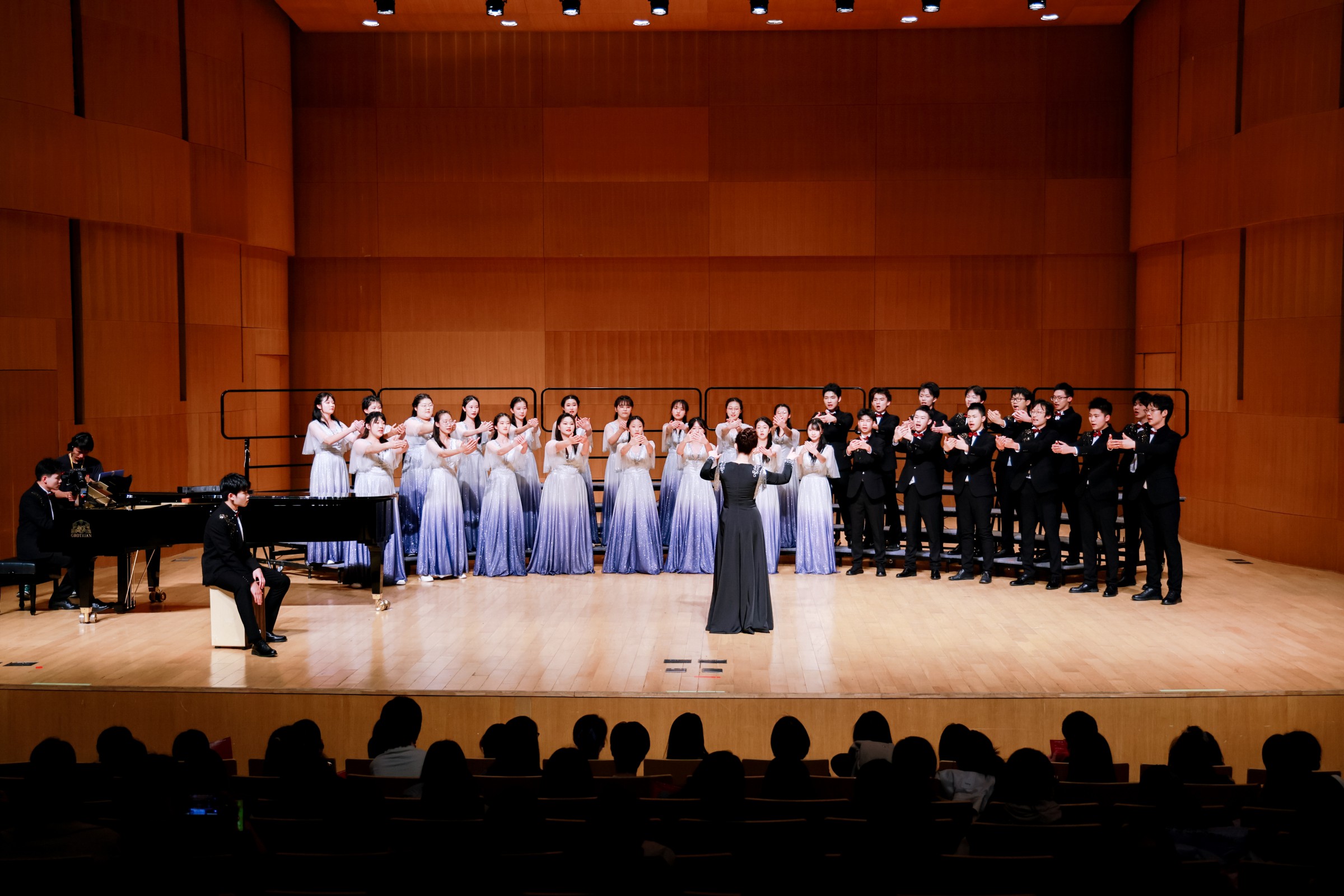 音乐会尾声,由校长亲自组建的和一教育集团“和合教师合唱团登台,校长、书记带领教师合唱团成员,与现场全体教职工共同唱响校歌《和风乐韵》,全体教职员工因同一首校歌紧紧凝聚,传递教育热忱的同时展现师者和睦同心,立德树人的和雅风范。