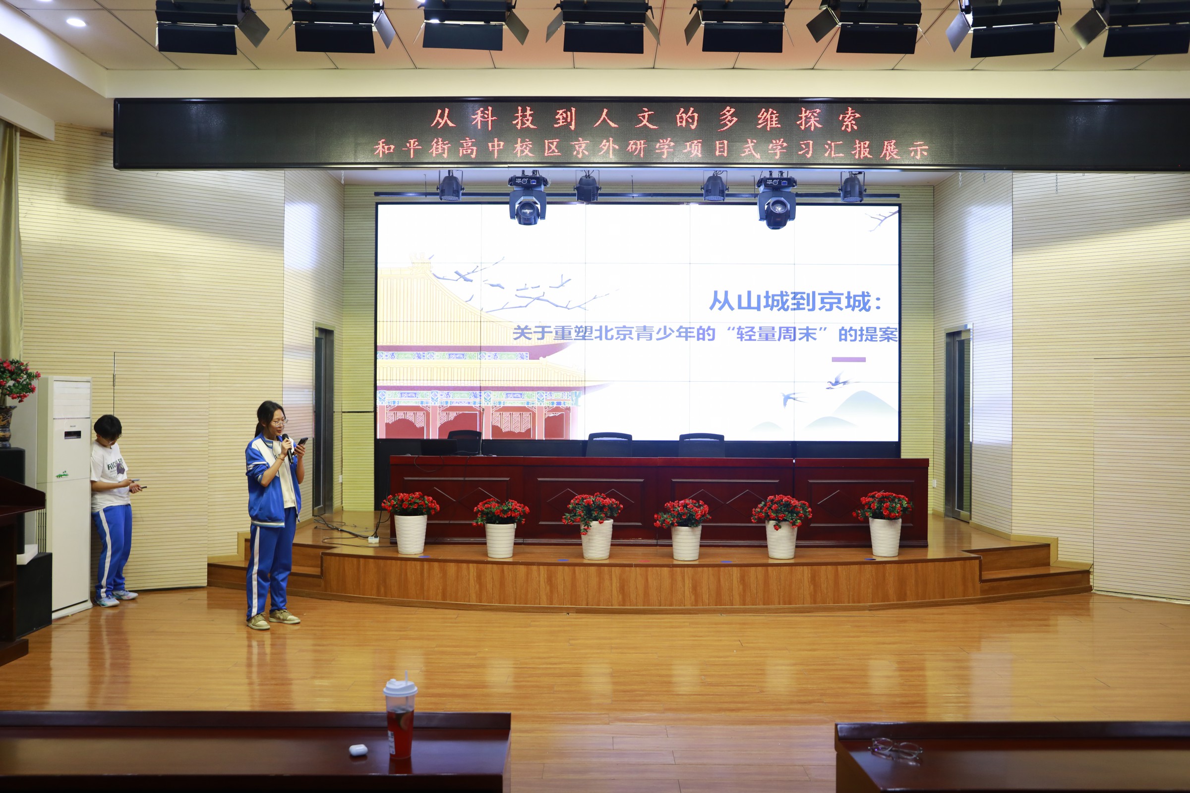2026年4月16日下午,北京市和平街第一中学和平街高中校区举办学科综合社会实践交流活动。高一、高二年级分别围绕“天府文脉承千载 蜀地风华耀古今”和“探渝州奥秘 悟山城风华”两大主题,展示了成都、重庆研学的丰硕成果。