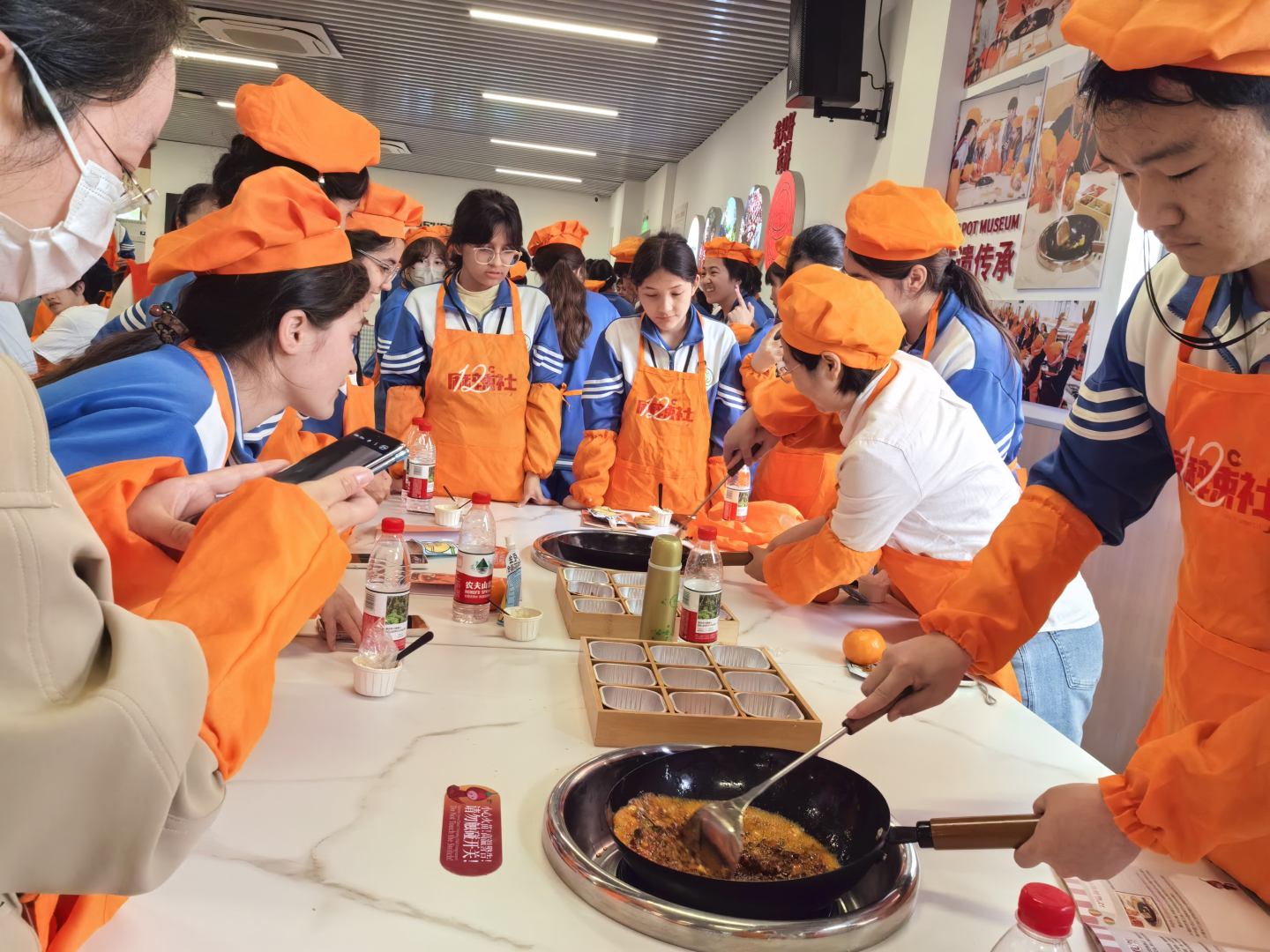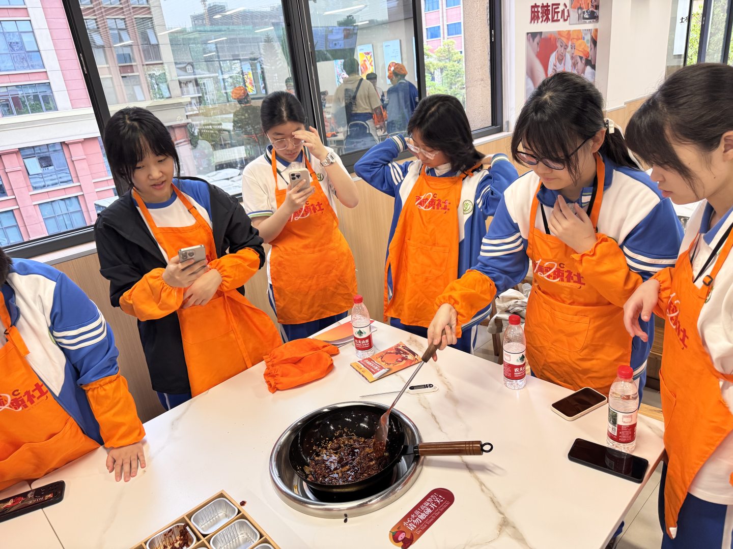 同学们化身“小小美食家”,深入学习重庆火锅的传统炒料工艺,探究不同香料的搭配奥秘,共同解锁“麻辣鲜香”的独特风味。
