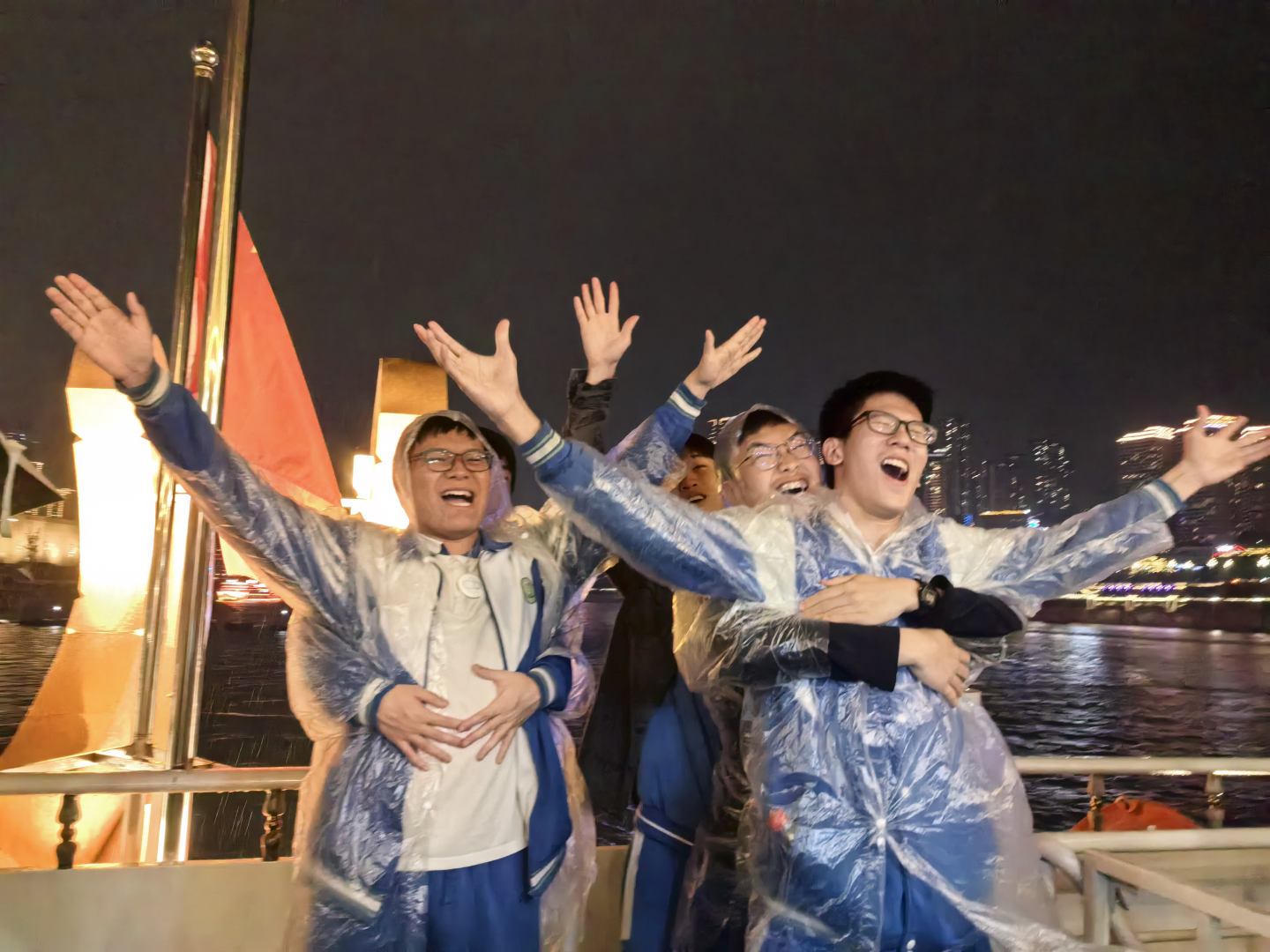 夜幕降临,华灯初上,同学们登上两江游船。长江与嘉陵江在此交汇,两岸摩天大楼灯火璀璨,洪崖洞的吊脚楼群在灯光映照下,宛如《千与千寻》中的梦幻世界。游船破浪前行,江风拂面,同学们一边欣赏来福士广场、重庆大剧院等地标建筑的壮丽夜景,一边用镜头记录这座“不夜城”的万千风情,璀璨灯火映照着青春的脸庞,也点亮了大家对这座立体山城的无限遐想。