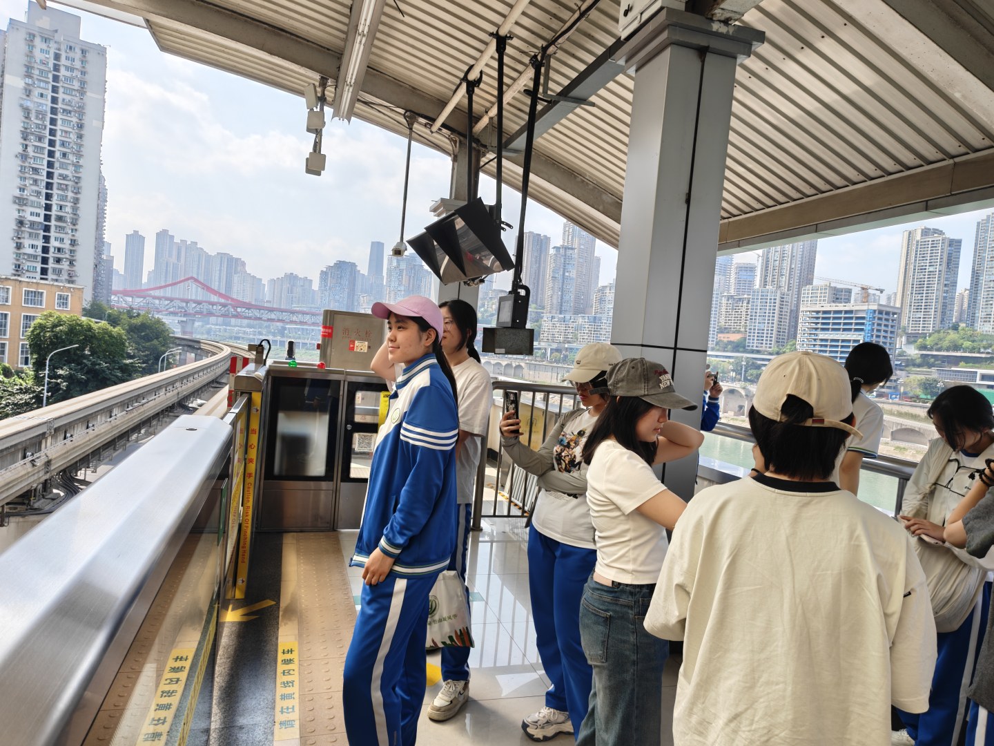 告别历史的厚重,同学们体验了重庆最具特色的交通工具——轨道交通2号线。当列车穿楼而过的那一刻,大家亲身感受“魔幻山城”独有的立体交通魅力。