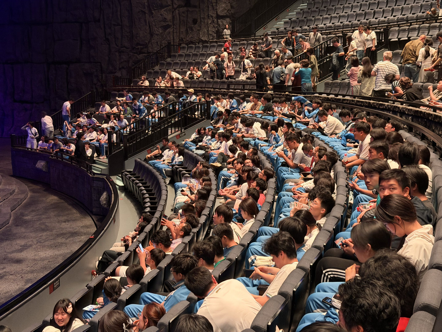 当晚,同学们观看了大型红色舞台剧《重庆·1949》。360度旋转舞台、逼真的声光电效果,将大家带回黎明前最黑暗的年代,英烈们在狱中不屈斗争、英勇就义的场景震撼人心,让红岩精神深深镌刻在每个人心中。