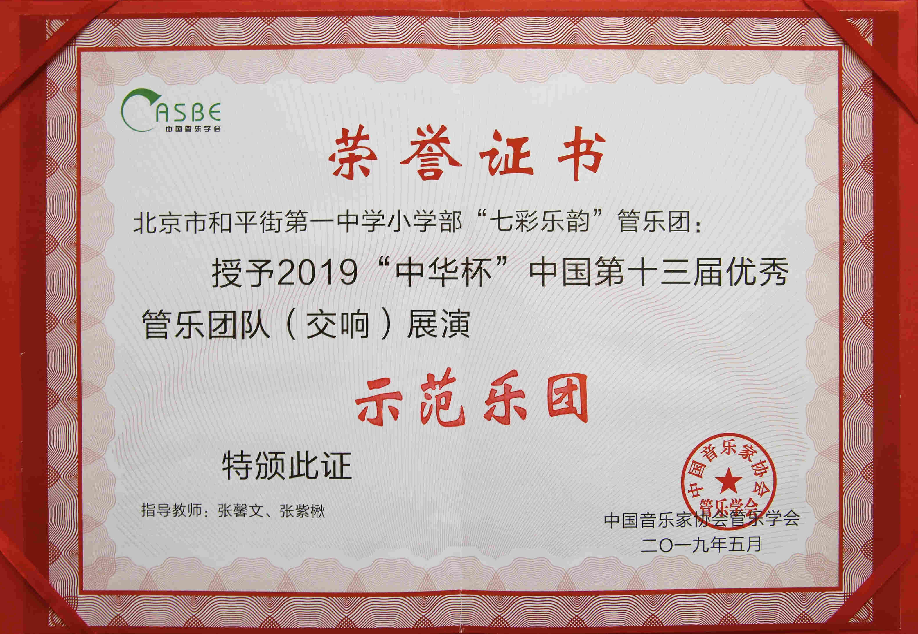 2019年5月 1 日,北京市和平街第一中学小学部“七彩乐韵”管乐团的老师和同学们参加了“中华号角—2019上海之春国际音乐节管乐艺术节暨‘中华杯’中国第十三届优秀管乐团队展演”活动。