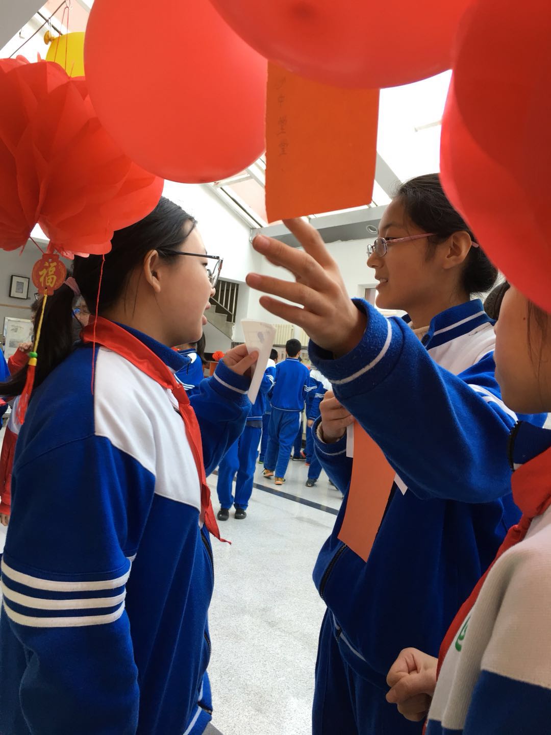 活动在3月2日12:30准时开始,每个班的班级展示区,五彩缤纷的花灯高高挂,妙趣横生的灯谜有序地排列其中,同学们争先恐后,踊跃竞猜,热情高涨。灯谜内容丰富多彩,从猜字谜到猜俗语,从猜地名到猜日常用语,涉及知识面广、趣味性强。同学们积极参与其中,仔细阅读谜语,或驻足凝思,或小声探讨。每个班级展示区里两名小裁判认真行使着自己的职责,评判着同学们的答案……飘动的花灯、涌动的人群,使活动现场到处弥漫着浓浓的元宵气息。