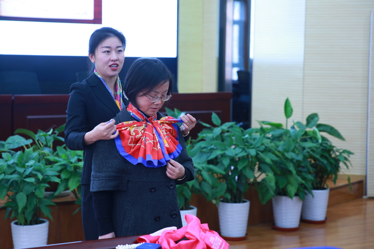 和平街校区和莲葩园校区分别请来礼仪专家王亚蕾老师和杨丽红老师为女教工们进行《服装搭配之玩转丝巾与配饰》的礼仪讲座,给老师们讲解丝巾的叠法、丝巾的系法、丝巾的围搭法以及日常礼仪。老师们们认真学习,积极体验,现场感受着成为精致、魅力、美丽女人的幸福。