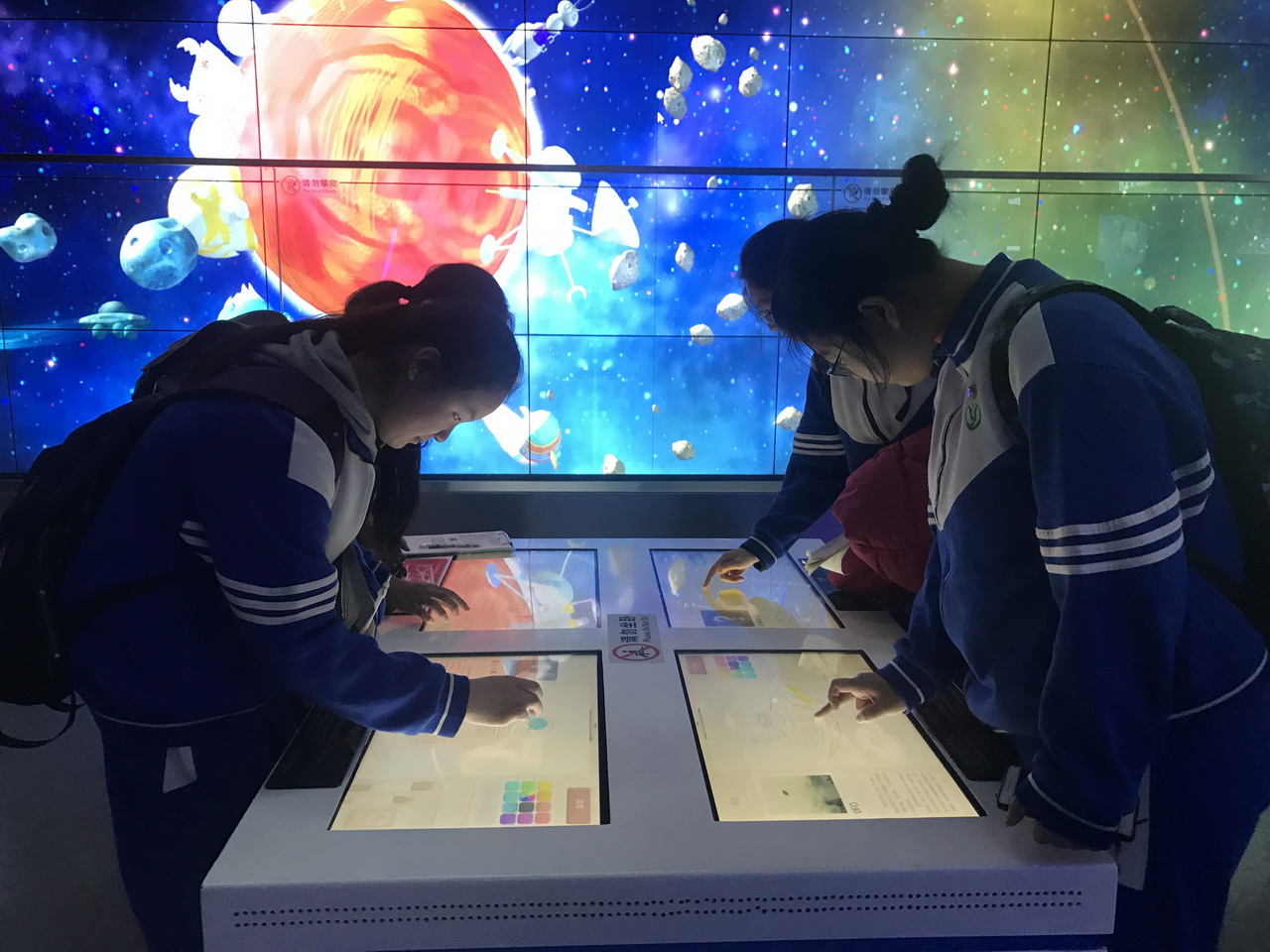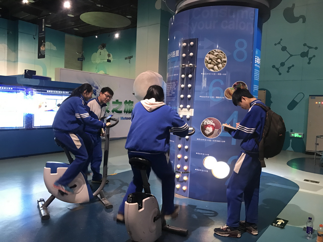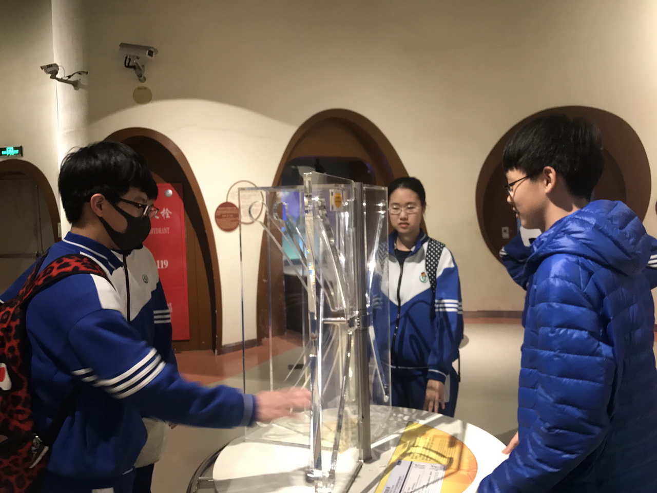 科技馆内 “华夏之光”、“探索与发现”、“科技与生活”、和“挑战与未来”等展厅中展示了有关化学、电磁、光学、力学、天文学、数学、声学、生命科学等领域的探索过程及取得的重大成果。丰富多彩的展示项目让同学们大开眼界。同学们有序参观,认真完成任务单,积极投入地体验着每一项科技运用的成果,努力学习着改变生活的各项科技成果的相关原理与知识。